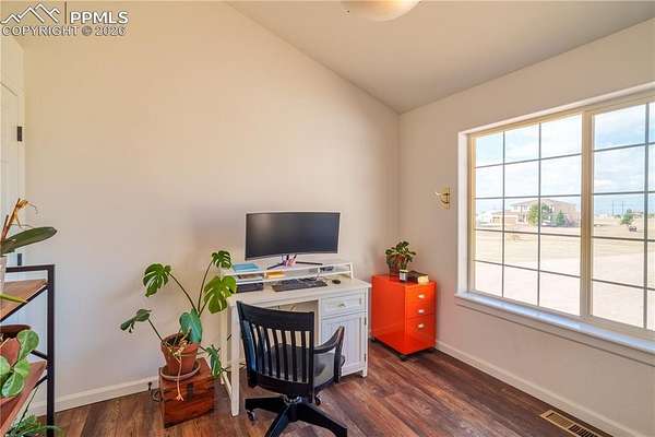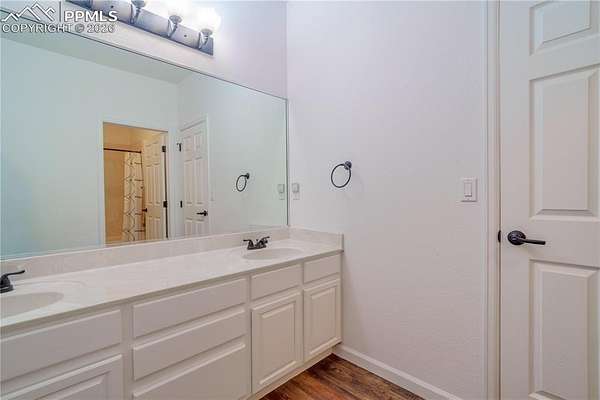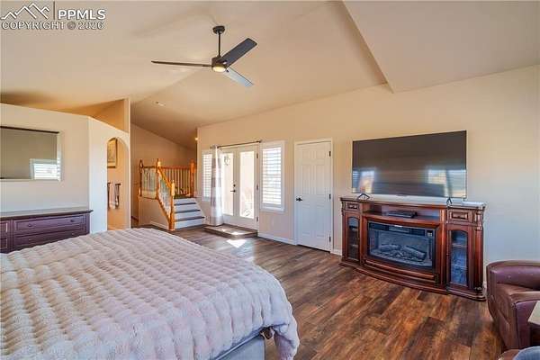 Rare acreage + true move-in-ready mechanics + a 2022 showpiece kitchen. Set on ~6.71 acres at the end of a cul-de-sac in The Meadows, this 1.5-story home backs to State Trust Land/open space for an open-sky feel, low light pollution, and Pikes Peak + mountain views. The main level was opened up with a complete 2022 kitchen remodel featuring quartzite counters, a large island with seating, white shaker cabinetry, tile backsplash, designer pendant lighting, warm gold-toned hardware/fixtures, plus a microwave drawer, electric range with hood vent, and stainless appliances (2022). Two gas fireplaces, surround sound, and a wet bar add comfort and entertaining flexibility. This layout delivers two primary suites (including a main-level suite) and a major convenience win: every bedroom has an adjoining bath. The garden-level basement is ~95% finished, offering excellent space for guests, hobbies, and everyday living. Big-ticket updates are already handled: two new 50-gallon water heaters (2021), two new HVAC systems (2024), two AC units, and two Ecobee smart thermostats. Outside, enjoy room for horses (RR-5) and the 2022 concrete basketball half-court. Well + septic.
