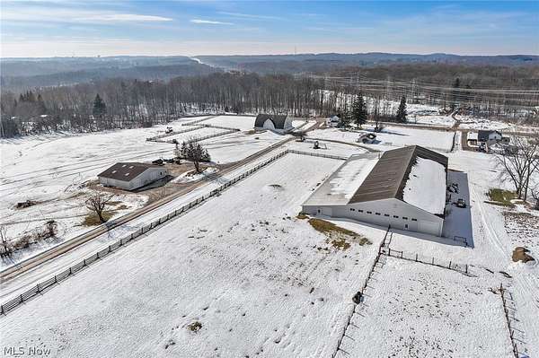 Moonlight Meadow Farm - Scenic 50+ Acre Farmstead Minutes from Chardon Square. Set among rolling countryside, this unique property offers a rare combination of character, acreage, and future potential-ideal for those seeking a private retreat, hobby farm, or estate site just minutes from the charm of Chardon Square. The approximately 2,000 square foot farmhouse blends historic character with thoughtful modern improvements, highlighted by a beautifully updated kitchen that serves as the heart of the home. Comfortable living spaces and classic farmhouse details create a warm and welcoming atmosphere. Surrounded by over 50 acres of open land, mature trees, and peaceful countryside views, the property offers exceptional flexibility-whether enjoying quiet mornings overlooking the land or planning future possibilities. The property was formerly known as Moonlight Meadow Farm, once home to alpacas and designed to support agricultural and hobby farm pursuits. Equestrian enthusiasts and hobbyists will appreciate the collection of outbuildings including a horse arena (previously used for alpacas), traditional bank barn, and mechanic barn, offering ample space for animals, equipment, storage, or recreation. A private pond enhances the natural beauty of the landscape while creating a peaceful outdoor setting. With acreage of this scale, the property also presents an opportunity for a future homesite or expanded estate, allowing buyers to create a personalized country retreat or generational property while enjoying the existing farmhouse. This parcel is part of a larger 109-acre legacy estate offered as two separate parcels. Buyers may purchase this farmhouse with over 50 acres or combine it with the neighboring parcel featuring a luxury estate home to create a remarkable multi-generational compound or private country estate. Opportunities offering this blend of acreage, outbuildings, future potential, and proximity to Chardon Square are increasingly rare.