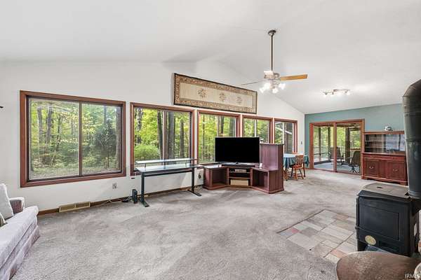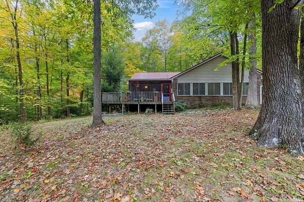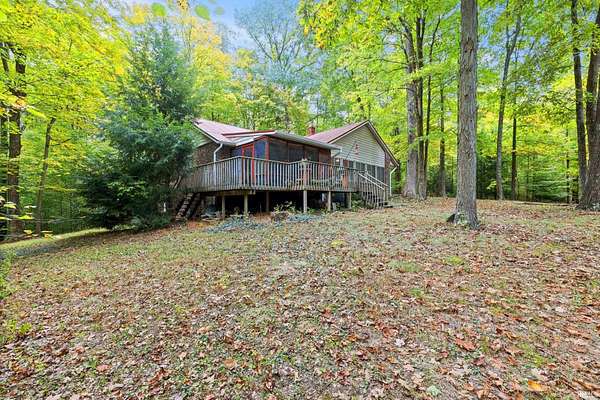 Peace, Privacy, and Panoramic Views -- Your Private Retreat on 13.5 Acres. Offered at appraised value! Escape to unmatched privacy at the end of a quiet drive, surrounded by over 13.5 acres of peaceful forest. This 4-bedroom, 2.5-bath ranch home sits atop a fully finished, walk-out basement, offering a total of 1,970 square feet of comfortable, versatile living space. The main level features three bedrooms, all bathrooms, and a convenient laundry area. The heart of the home is the vaulted great room, lined with windows that frame sweeping wooded views and fill the space with natural light. The open layout flows into the dining area and a fully equipped kitchen, with easy access to a 10x15 screened-in porch--perfect for relaxing or entertaining with a backdrop of nature. Downstairs, you'll find a fourth bedroom and a flexible bonus space ideal for a second living area, office, or studio. Step out the basement's new sliding glass door to enjoy direct access to the peaceful outdoors. Outside, there's a fenced garden area and a vineyard just waiting to be revived. Additional features include a two-car garage with built-in shelving and workbenches, attic storage, and an extra refrigerator and freezer. Recent updates include newer vinyl siding and a durable metal roof (approximately 10 years old). Most personal property can be included with the sale--optional for the buyer. This property offers the rare combination of total seclusion and move-in-ready comfort. Whether you're looking for a quiet homestead, hobby farm, or weekend retreat, this is a place to truly unplug and unwind.