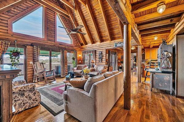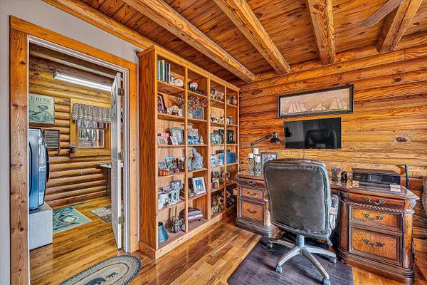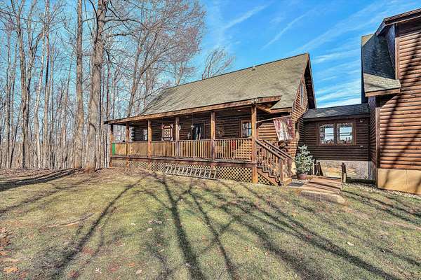 Your Private Nature Retreat! Perfectly situated on 8.10 sprawling acres, this custom-built Southland Log Home offers a rare combination of serene views & refined craftsmanship. Designed to harmonize with its natural surroundings, the residence features an inviting open-concept floor plan characterized by soaring cathedral ceilings, rich hardwood flooring, & expansive walls of windows that flood the home w/natural light. The home features 5 BR, 3 full BA, & guest BA. Lower level would be perfect for an In-Law suite. Great home for entertaining. 2 decks & expansive patio, 2 car attached garage & detached garage. This home offers the peace of the countryside without sacrificing convenience. Beautifully landscaped, sunrise views & above ground pool. For more information, click on ''more'' Your Private Nature Retreat! Custom Log Home Living on 8+ Acres. Perfectly situated on 8.10 sprawling acres, this custom-built Southland Log Home offers a rare combination of serene views and refined craftsmanship. Designed to harmonize with its natural surroundings, the residence features an inviting open-concept floor plan characterized by soaring cathedral ceilings, rich hardwood flooring, and expansive walls of windows that flood the home with natural light. The gourmet kitchen serves as the heart of the home, boasting sleek updated granite countertops, a gas range and convection oven, double ovens, pantry, and breakfast bar. The space flows effortlessly into the dining area and great room, and out to the home's premier outdoor living spaces--including a grand front deck with retractable awning overlooking a tranquil pond and a private covered rear deck perfect for morning coffee. The main level is completed by a versatile office (or 5th bedroom), a large laundry room with a utility sink, guest bath, and a striking breezeway leading to a generous family room with a cozy gas fireplace. Retreat to the private upper-level primary suite, a sanctuary featuring hardwood floors and a spa-like ensuite with rustic barn doors, Jacuzzi tub, and double vanities. Two additional guest rooms and a full bath. Breezeway between the bedrooms that gazes down on the dining and living areas below. The finished lower level expands the living space significantly, offering a second primary suite, fitness room, recreation room, or use as an In-Law suite with a kitchen. Expansive covered patio designed for entertaining overlooking the 12x24 above-ground pool with sunrise views. Two highly efficient Hybrid heat pumps. Located within easy reach of Roanoke, Rocky Mount, and Smith Mountain Lake. This home offers the peace of the countryside without sacrificing convenience. Come hear the sounds of nature and find your getaway from the hustle and bustle.
