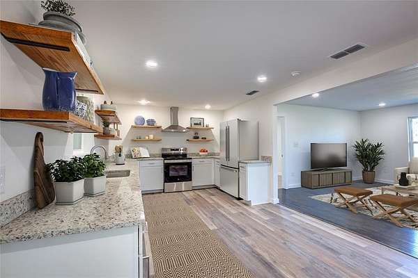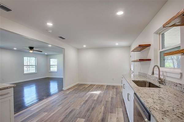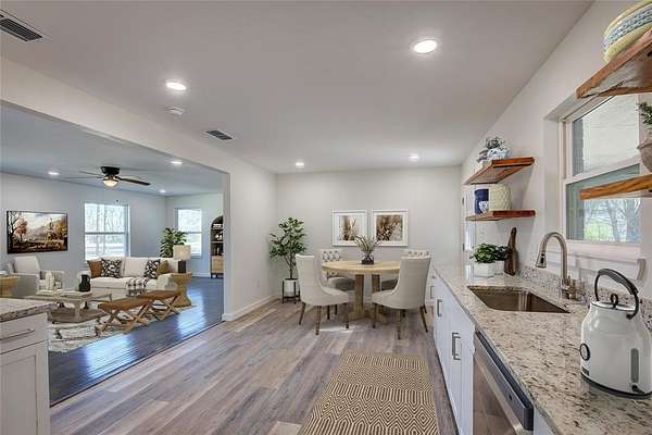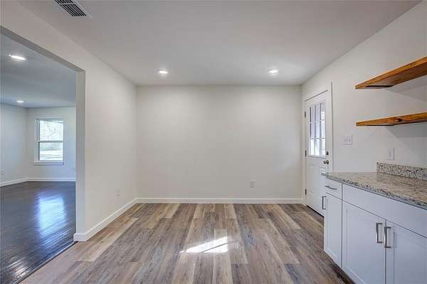 Completely remodeled in 2025, this beautifully updated home offers the rare combination of modern comfort, functional space, and acreage within the city limits of Sulphur Springs. Every major system has been replaced, including HVAC, windows, plumbing, electrical, insulation, kitchen, bathrooms, and appliances--providing peace of mind and truly move-in-ready living. This 4 bedroom home features an open-concept layout with a split floor plan designed for both everyday comfort and entertaining. Gorgeous original hardwood floors add warmth and character, while updated finishes throughout reflect thoughtful design and quality craftsmanship. The attached two-car garage offers exceptional flexibility, featuring a dedicated home office or flex space with a pedestrian door--ideal for working from home, hobbies, a workshop, or additional storage. A covered breezeway creates a seamless connection between indoor and outdoor living, providing a comfortable space to relax while overlooking the fenced backyard. Situated on an expansive 1.7-acre lot, the property includes fresh sod, a fully fenced backyard for pets or children, and a large pasture area with ample room for animals, additional storage, gardening, or future customization. This in-town acreage provides the freedom of space without sacrificing convenience. Jefferson Street offers a direct route to Downtown Sulphur Springs in one direction and easy access to Interstate 30 in the other, making daily commuting and errands simple and efficient. This exceptional property delivers modern updates, versatile living space, and room to grow--all in a highly convenient location. A rare opportunity to enjoy fully remodeled living with acreage in the heart of Sulphur Springs.