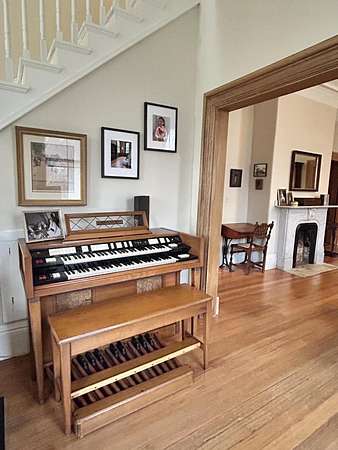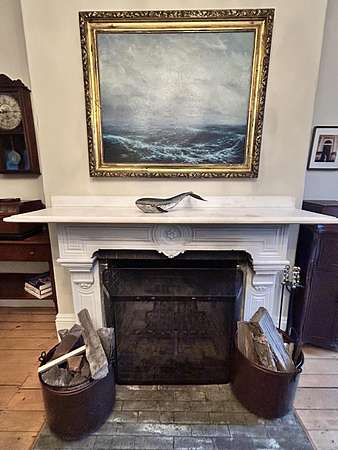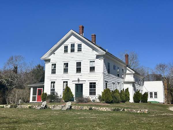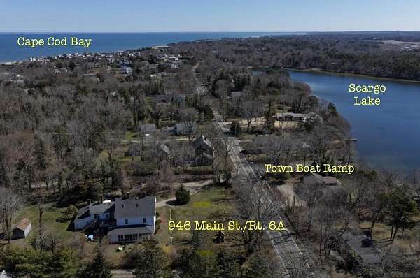 The home is located on the north side of Route 6A. From Dennis Village, the house is on the left, across from the Town Landing to Scargo Lake.