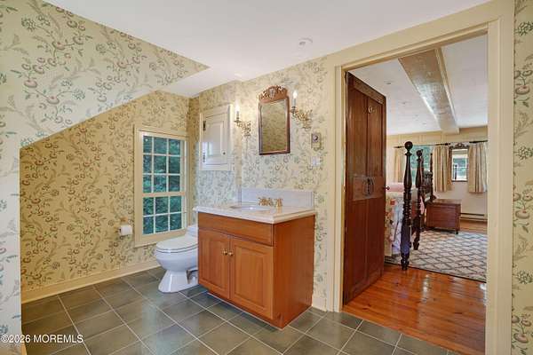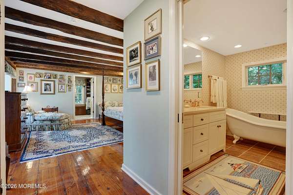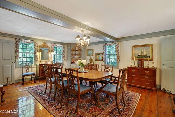 ''The Nathaniel Smith House'', built in the early 1700's in Massachusetts, was reassembled from its original materials on site, expanded and updated over the years. With views of the Navesink River, this 4,526 sq. ft. house with 5-6 bedrooms, 4.5 baths sits on a 2.14 acre lot which includes an income producing 1,000 sq. ft. ranch house. If you're looking for charm and character in a country setting and want to awake the feeling of a County Inn in New England, this property will especially appeal to lovers of historic homes. A unique offering with original wide-plank floors, wood paneling, rafter ceilings, 5 wood-burning fireplaces, 3 car garage, generator, first floor master bedroom suite and so much more! Within a few minutes of the high-speed ferry to NYC and lovely ocean beaches!