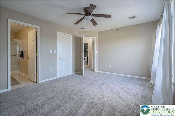 Discover the perfect blend of comfort, convenience, and community in this beautifully maintained 2-bedroom, 2.5-bath condo in the coveted Cedar Creek Farms development of South Whitehall Township. Tenants can move right in and enjoy the brand-new carpeting throughout, a modern kitchen and a bright, open layout ideal for both relaxing and entertaining. The family room features a natural gas fireplace to cozy up to on those upcoming cold winter nights. The spacious primary suite offers a true retreat with a large walk-in closet and a private ensuite featuring a double-sink vanity. Step outside to your covered balcony for morning coffee or evening unwinding. Practical upgrades include a new microwave (2025), new water heater (2025), programable smart thermostat, Ring smart doorbell, in-unit laundry with stackable washer/dryer, central air, and ethernet ports in the family room and both bedrooms for seamless high-speed connectivity. The 1-car attached garage and abundant storage make daily life easy. The HOA fee covers water, sewer, trash, recycling, exterior and common area maintenance (including the roof), plus access to a sparkling pool, tennis courts, and clubhouse-giving you more time to enjoy life. Located in the sought-after Parkland School District (Parkway Manor Elementary). It has unbeatable proximity to major roads, shopping, dining, and Wegmans. Come see this property today!