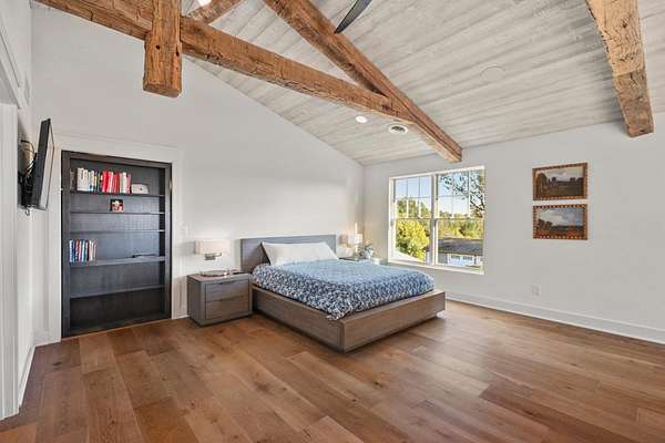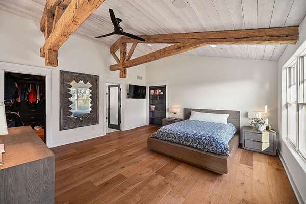 - 9 ft + Ceiling, Beam Ceiling, Built-Ins, Cathedral Ceiling, French Doors, Multi Panel Doors, Walk-In Closet(s)