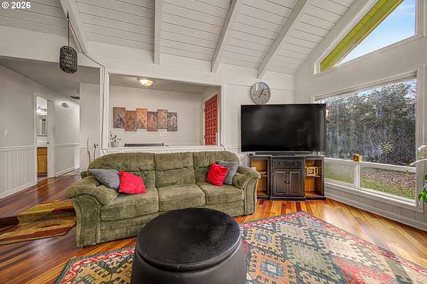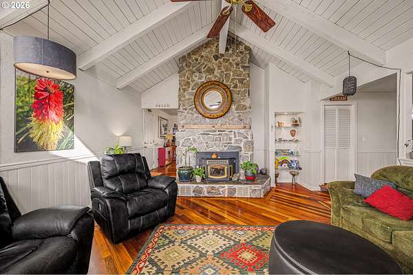 Tucked away at the end of a long private drive, this peaceful 3 bedroom, 2 bathroom home sits on 5 beautiful acres. Enjoy quiet country living with plenty of space to roam, including walking trails already cut through the property, as well as an area for for outdoor sports. Inside, you'll find new carpet in the bedrooms and rich cherry wood floors throughout the main living areas. The living room features a tall vaulted ceiling and a stunning floor-to-ceiling rock fireplace, perfect for cozy evenings at home. A new HVAC system keeps the house comfortable year-round. Outside, there is large, covered parking for an RV or other toys, plus room for gardens, or future projects. The property also under a timber deferral, helping keep property taxes lower. This is a rare chance to own a private retreat with both comfort and space.