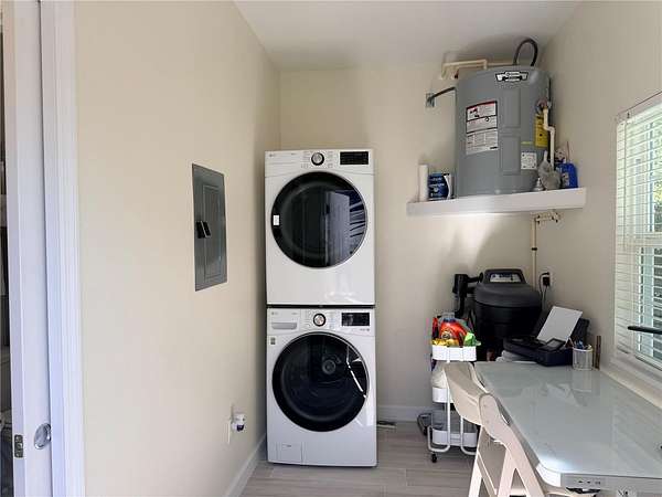 The brand-new 384 sq ft Grande Suite, completed in spring 2025, is thoughtfully designed with upscale finishes throughout. Tile flooring runs wall to wall for a clean, modern feel. The L shaped kitchenette offers an impressive amount of cabinetry, quartz countertops, and a beautiful backsplash that elevates the entire space. The full bathroom features a tile shower with heavy glass doors and a vanity that perfectly matches the kitchenette cabinetry for a cohesive, designer look. A washer and dryer convey, along with a water softener for the coach house making this property truly move-in ready.