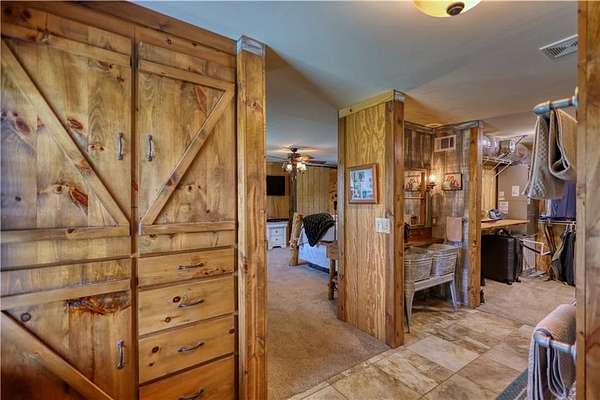- Beamed Ceilings, Cathedral Ceiling(s), High Ceilings 9 ft Main, Walk-In Closet(s)