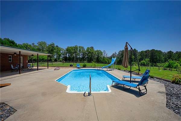 Endless Possibilities on 159 Acres in middle Georgia - A True Multi-Use Farm Haven! Welcome to your dream farm - a sprawling 159-acre paradise tailored for equestrians, ranchers, homesteaders, outdoor enthusiasts, and anyone seeking space, freedom, and adventure. Whether you're riding, raising livestock, or relaxing poolside, this property truly has it all. Horse lovers will appreciate the five-stall barn complete with four run-outs, tack and feed rooms, a wash rack, and a grass arena for training. Three thoughtfully designed pastures feature run-in shelters, shade, and electric rope fencing, ensuring your horses stay happy and secure. With 5-10 miles of established trails, dirt bike/mudding tracks, and prime hunting areas, there's no shortage of adventure. Whether it's trail riding, ATVing, fishing, hunting or a quiet day in the woods, this land invites exploration. Live off the land with a large garden, chicken coop, and fertile soil ready for planting. For the cattle operation, enjoy fully fenced pastures, ample woods for shelter, and a stocked pond that serves both livestock and leisure. Car lovers and tinkerers will enjoy the detached garage/workshop which has an attached lean-to in addition to the 2 car attached garage and 4 car carport. The property has three wells and four septic systems in place, ensuring infrastructure is already in place for expansion or multiple households. The main home is a beautifully appointed 5-bedroom, 3.5-bath farmhouse that blends modern amenities with custom country details. The updated kitchen boasts granite countertops, stainless steel appliances, and a giant walk-in pantry, while reclaimed materials throughout give it an authentic farm-cabin vibe. Highlights include trough sinks, a whimsical "outhouse" style half bath, and a barbed-wire-lined banister-all adding rustic flair to this upscale retreat. Enjoy the stunning views of the pond and pastures from the wraparound porch, or head out back to the resort-style pool with a waterslide, lush landscaping, and a pool house complete with bathroom, kitchen area and double doors that open to the covered patio. On the opposite side of the property, with their own private drive, you'll find two more home sites: a mobile home in need of renovation and a modular home mid-renovation-perfect for future visits from extended family, guests, or rental income. Whether you're building your legacy, starting a business, or just looking for peace and space, this one-of-a-kind farm delivers. ASK ABOUT MAJOR INCENTIVES WITH FULL PRICE OFFER- INCLUDING FULL CLOSING COSTS PAID!