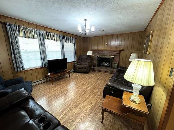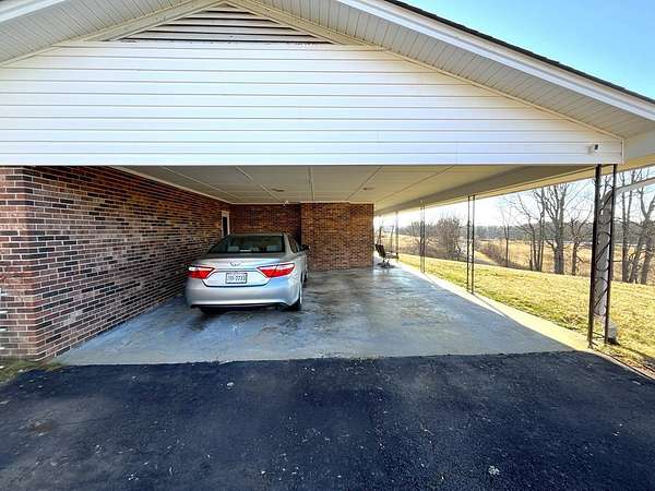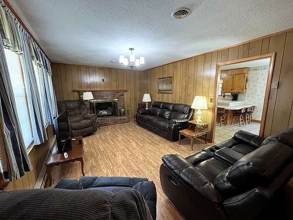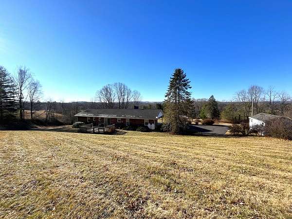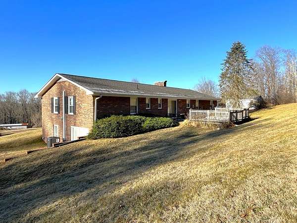 This brick 3 bedroom 2 bath home sits on approximately 4.4 acres in close proximity to Olde Mill Golf Course, Highway 58, and the Blue Ridge Parkway! Main level features include a living room with laminate flooring and a brick gas log fireplace, large kitchen with a newer refrigerator and dining area, master suit with a large bedroom and a full bathroom, two more guest bedrooms, a hall bathroom, large laundry area with washer (new) and dryer, and a mud room off the carport! In the partially finished basement you'll find fresh drywall, new lighting, newer baseboard heaters, and a large brick fireplace with gas logs along with an unfinished portion for a workshop or storage! Other features include a newer heat pump with programmable digital thermostat, replacement windows, carport, rear deck, paved driveway, and a 24 x 12 outbuilding! All of this sitting on approximately 4.4 acres with a nice countryside view, large open yard surrounded by woods, and just seconds off of the new Highway 58 Bypass!