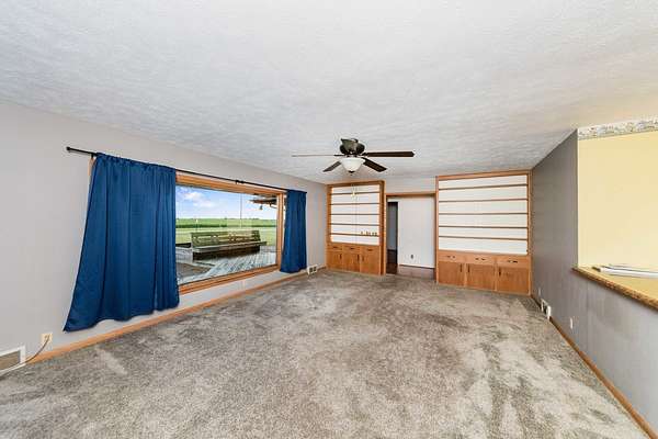 ENJOY COUNTRY LIVING & BRING YOUR BUSINESS! Check out this super ranch home attractively set on 5 acres that includes a 57' x 72' outbuilding that could be the home for any of your business ventures! The three bedroom/2 bathroom home gives you a large living room with gas fireplace, eat-in kitchen, den and sunroom. The three bedrooms are spacious, and the main bedroom includes an en suite bathroom. There is also a main level laundry area. The unfinished basement provides ample storage space. Enjoy gorgeous views of the vast open area in all directions from your deck/patio or sunroom. The park like acreage is also improved by a storage building 30' x 50' and 4 metal bins. But the 'shop' building is the one that is waiting for your business! A few highlights of that building include: 3 phase wiring, oil change pit, swing hoist, office, bathroom, kitchen, upper-level loft storage and much more! There is natural gas to both the house and outbuilding. Recent asphalt driveways for the house and outbuilding. The property is set a few miles West of Dana along County highway 44 (an all-season road). Take a look at this unique property where you are able to live and work at the same place!