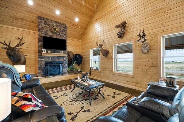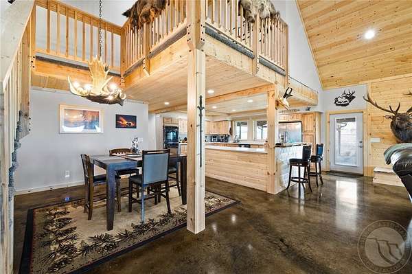 Immaculate custom-built Barndominium on 10 acres & less than 20 minutes to Billings! This exceptional property offers over 3,200 sqft of fully finished living area & a dream 2,640 sq. ft. shop with radiant floor heat throughout both!! Step inside this beautiful home & you're greeted by soaring ceilings, stained concrete floors & a tranquil 250 gallon self contained built-in freshwater aquarium. Relax in the upper loft with a family/theater room and wet bar, ideal for guests & gatherings. The cozy master offers a wall-mount fireplace, tiled shower w/dual heads, walk-in closet & patio door leading to the private all-season porch & hot tub. The Pristine shop includes a 6x10 walk-in cooler, 14' & 12' insulated doors and a 1/2 bath. Outside the 1,200 sq. ft. covered wrap around patio is an ideal spot for enjoying the peaceful solitude of country living.