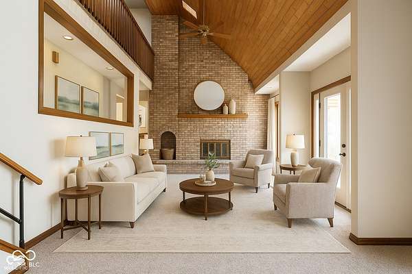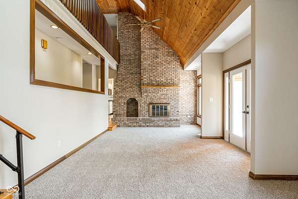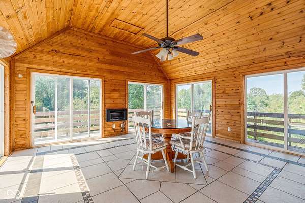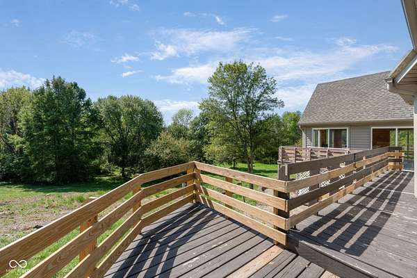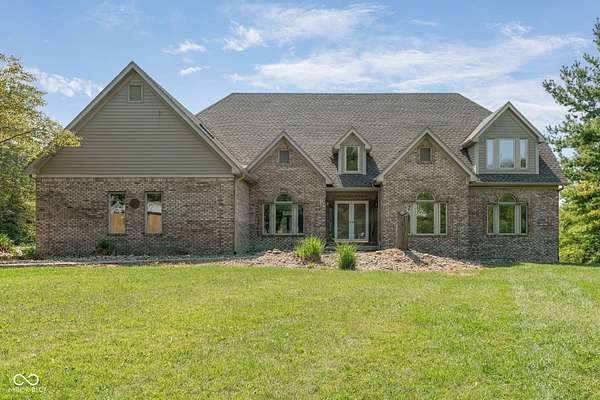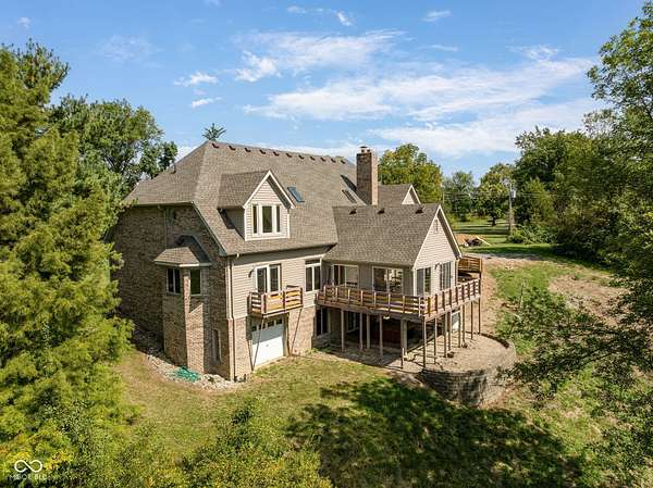 Only 30 minutes from downtown Indianapolis, yet a world away. This custom-designed, stick-built home is nestled on nearly 8 acres. There is space to do all outdoor activities you could desire. A rare opportunity to enjoy unmatched privacy and the simple beauty of nature while remaining close to the city. Inside, quality craftsmanship is evident at every turn. The two-story foyer and family room showcase a vaulted, planked ceiling, floor-to-ceiling brick fireplace, and expansive windows framing peaceful views of the property. The main floor offers a large kitchen, sunroom, and a spacious primary suite with a walk-in closet that feels like its own room. Upstairs, a sunlit bedroom with ensuite bath and walk-in closet provides a private retreat, while two additional bedrooms are connected by a Jack-and-Jill bath. The walkout basement expands the living space with a workshop featuring its own garage door, ample storage, a flex room, and an additional bedroom. Recent updates-including fresh paint, brand-new carpet, and a new furnace-add modern comfort to this timeless build. Designed with care and built to last, this home pairs enduring quality with a tranquil outdoor lifestyle. From morning coffee on the porch to evenings under wide-open skies, it's a place to slow down, reconnect with nature, and create lasting memories-all just minutes from the city.