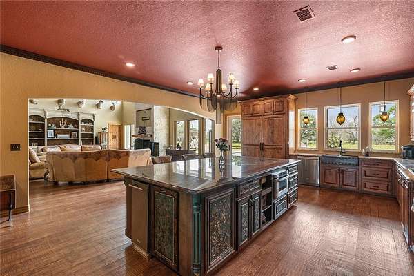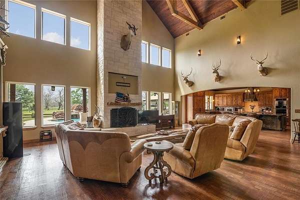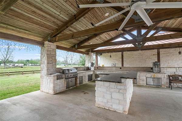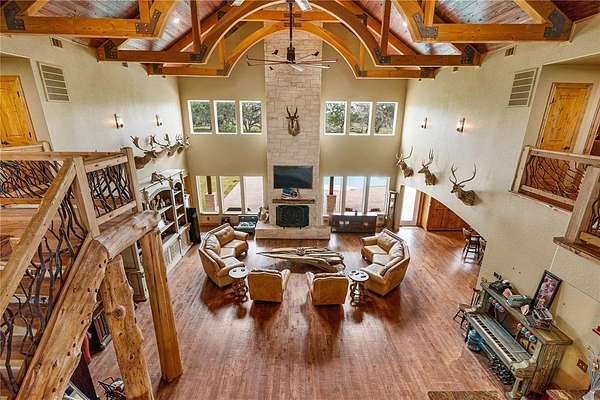 Est $9,442/moPOSSIBLE EVENT VENUE. The list price actually offers additional 13AC OR ~368 AC for $4.9M as a working cattle ranch including lighted rodeo arena, horse barn, hay barn, workshop with kitchen & bath. Foreman's quarters covered mobile home. Seller will allow 36 AC for $2.9M with primary residence and includes arena, barns & workshop.