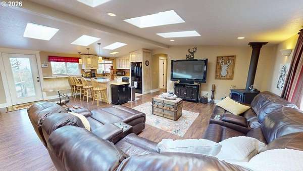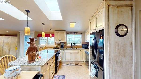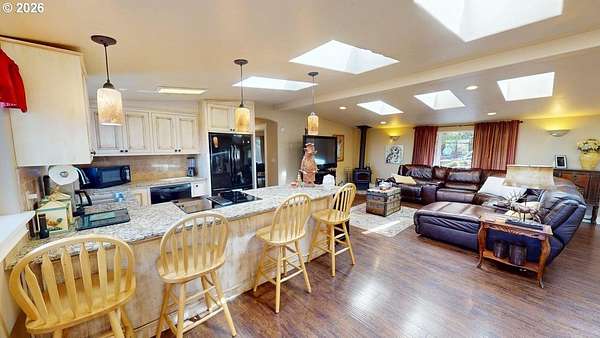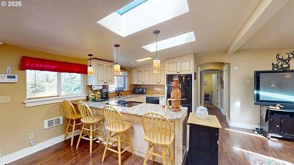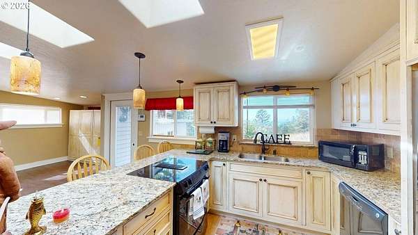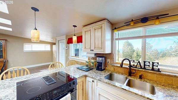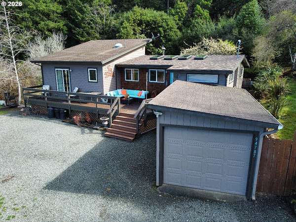 Updated ocean view home situated on mostly private 1.5 acres, offering space, privacy, and relaxed coastal living. The open concept design is filled with natural light and features vaulted ceilings, beautiful flooring, and a cozy wood stove for those cooler evenings. The kitchen is thoughtfully appointed with granite countertops, an eat bar, and stunning cabinetry ideal for both everyday living and entertaining. The spacious owner's suite includes a large walk-in closet and private slider leading to the deck, where you can enjoy peaceful ocean views. Outside, you'll find a 30x40 shop with pull-through doors perfect for your RV, boat, or recreational toys along with a greenhouse and an updated outbuilding suitable for guest space or additional storage. Protected from the wind and offering privacy, this property is a rare coastal opportunity with room to live, work, and play.