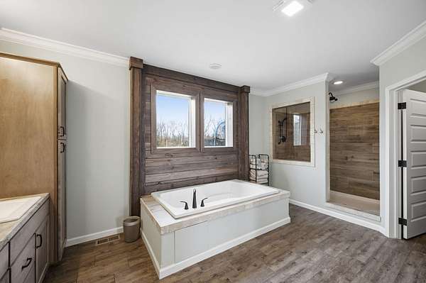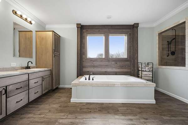 - Breakfast Bar, Ceiling Fan(s), Primary Downstairs, Soaking Tub, Walk-In Closet(s)