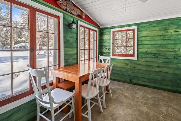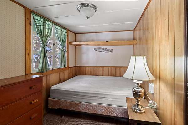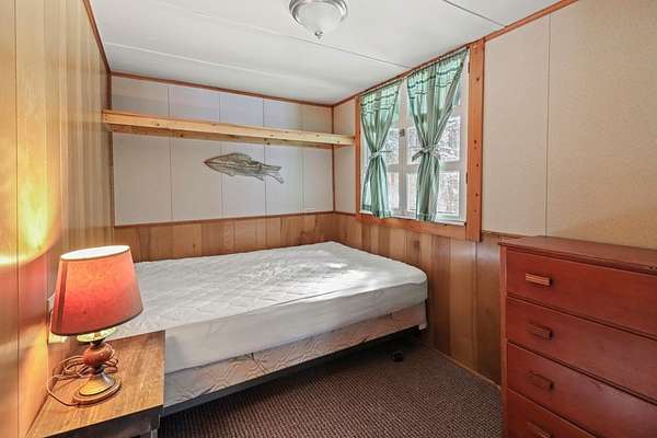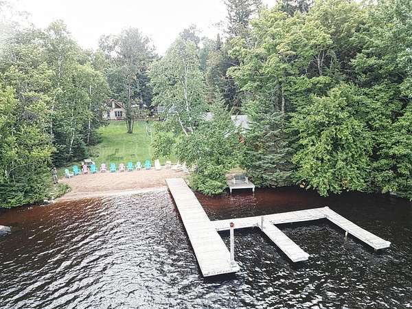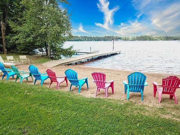 This quaint three-season, cottage is situated on Big Stone Lake, part of the Three Lakes Chain, and shares 3.76 acres and 233' of level frontage. With only five other cottages sharing the grounds, you can experience a rare balance of privacy and community. The cottage is turn-key with two bedrooms, and one full bath. A bright, screened porch provides the perfect setting for meals, morning coffee, and relaxing with a cocktail. For future needs there is potential to expand the living space by another 289sq.ft.. The well-kept grounds include a sandy beach ideal for swimming and lounging. For evenings a firepit is available, and two permanent piers simplifying boating and fishing activities. The location is amazing with a golf course across the street, the Nicolet Forest just minutes away, and snowmobile/ATV trails close by for year-round recreation. Low HOA fees and a strong rental history offer a rare opportunity to own a lake retreat at an affordable price. $249,000.