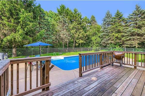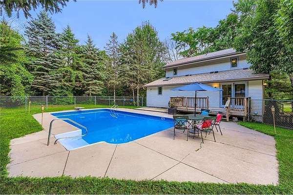 Acreage, location and endless opportunities!! Nestled in a serene, wooded setting, this 2.2 acre property offers the peace and quiet you crave with all the amenities close by. Comfort, privacy, and flexibility highlight this beautifully maintained 3-bedroom home, ideally situated just minutes from town. Inside, you'll find a spacious and inviting layout with warm natural light, comfortable living spaces, and many modern updates. If you like entertaining, the generous kitchen has tons of storage and flows into a cozy living room with fireplace. Add in the dining area with adjoining deck and it's perfect for gatherings. Each bedroom offers ample space and storage, with the primary suite featuring its own private bath and laundry. In the lower level, your choices are many! Perfect for your "Man Cave" (complete with massive workshop), an additional living area, or a fully equipped in-law suite with its own entrance--perfect for guests or extended family. And don't forget potential rental income!! Step outside to your private backyard oasis, complete with a sparkling inground pool, patio space for entertaining, and a large back yard with mature tree coverage that enhances the peaceful atmosphere. Whether you're looking for a multi generation setup, a home that offers flexibility, or simply a quiet place to unwind close to the lake, this unique property has it all.