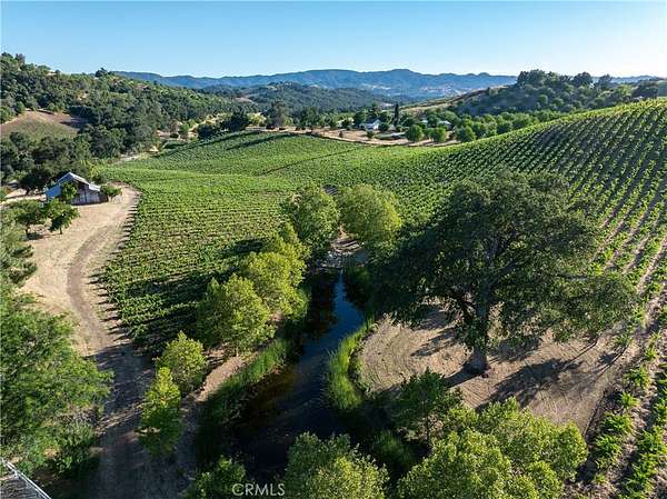 A Premier Certified Organic Vineyard Estate In the Heart of Westside Paso Robles Adelaida District, just down the road from Justin Winery's Michelin Star Restaurant. Welcome to an extraordinary 80-acre vineyard estate in the prestigious Westside of Paso Robles. This property is a rare gem, offering a blend of luxury living and high-quality organic viticulture. The property boasts 62+ acres of highly coveted grapevines, organically cultivated to produce top-tier wine grapes. The vineyard's organic varietals include: Cabernet Sauvignon: 23 acres, Cabernet Franc: 9.7 acres, Syrah: 9.4 acres, Merlot: 7.9 acres, Petite, Sirah: 4.6 acres, Malbec: 3.8 acres, Petite Verdot: 3.7 acres. A commitment to sustainable and organic farming practices including SIP Certification. Currently in the second year of the organic certification process. Infrastructure Upgrades include enhanced weather protection, renovated outbuildings, and upgraded shop facilities. Replanting includes over 2,500 new vines, primarily in the Syrah block. Water Management: Multiple productive wells, extensive above-ground storage, and a well-maintained irrigation system. Natural Pest Control: Installation of owl, bluebird, and bat boxes. Exceptional Living and Income Opportunities. The estate features three homes, each offering unique living or rental opportunities. Main Home: Transformed from an aging farmstead to a contemporary vineyard retreat, this licensed short-term vacation rental underwent a stylish renovation. Resulting in a stunning home with large living spaces, a private floor plan, and luxurious finishes. The kitchen and bathrooms are straight out of a decor magazine, and large windows provide breathtaking vineyard views, creating a serene, spa-like atmosphere.