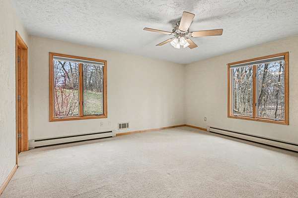 Welcome to your private oasis! This stunning 4-bedroom, 3-bathroom all-brick ranch is nestled on over 3 acres of serene, wooded bliss.The heart of the home is a massive kitchen and dining area featuring elegant French doors that open to a sun-drenched patio--perfect for morning coffee. Relax in the living room by the cozy wood-burning fireplace while taking in views of the the deck with brand-new railing overlooking the private backyard. With 3,200 finished square feet, the walkout basement is an entertainer's dream, complete with a full bar and a second wood-burning stove. Peace of mind comes standard with a new water heater already in place. Hobbyists and tradespeople will fall in love with the 26x48 fully insulated barn, now featuring a brand-new roof and freshly painted exterior, its own furnace, wood burner, half bath, and a lean-to for extra storage. Privacy, space, and modern updates all in one! Showings to start Monday, 4/6/26.