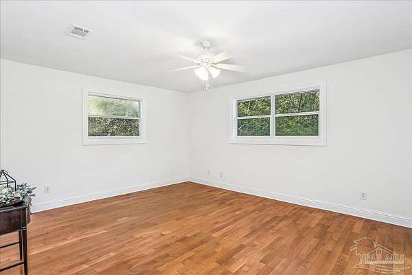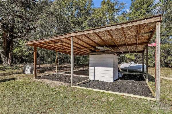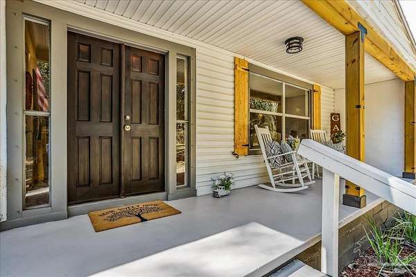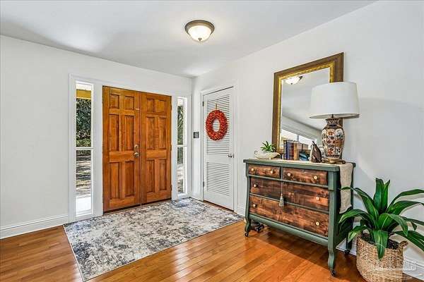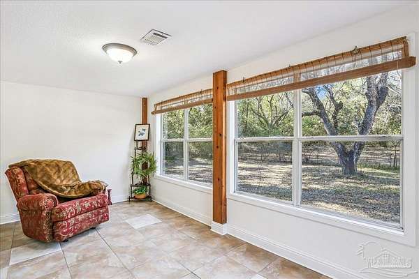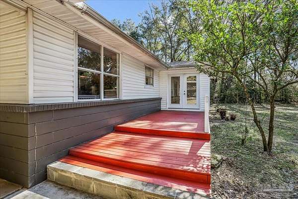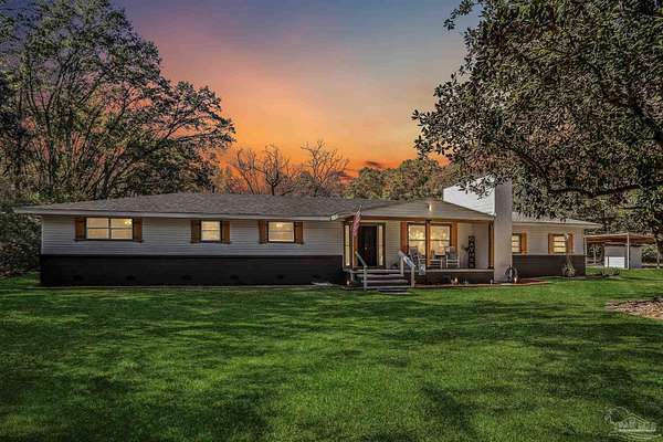 Tucked away on nearly five private acres, this spacious and beautifully updated home offers the perfect blend of comfort, functionality, and seclusion. Inside, you'll find a combination of hardwood and tile flooring throughout, enhancing both durability and style. The kitchen has been refreshed with new quartz countertops, updated lighting, abundant cabinet storage, and a layout ideal for everyday living and entertaining. The primary suite is a true retreat, featuring two oversized walk-in closets and an en suite bath with a spa-like ambiance. Two additional bedrooms also offer generously sized closets. Impact-resistant windows throughout the home provide peace of mind and energy efficiency. A bright sunroom-ideal as a flex space or potential fourth bedroom-opens to a large deck, perfect for relaxing or entertaining while enjoying the tranquil surroundings. The home sits far back on the property, offering exceptional privacy. A large attached workshop adds tremendous versatility, and the expansive acreage provides ample room for gardening, outdoor storage, and parking for cars, boats, or RVs. This is a rare opportunity to enjoy space, privacy, and modern updates all in one remarkable property. Despite its peaceful seclusion, the property is ideally located near the New Outlying Field Development, Navy Federal Credit Union campus, and convenient access to Interstate 10, offering the perfect balance of privacy and connectivity.