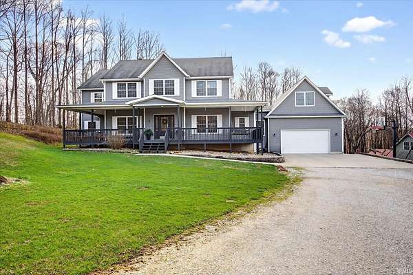 Roughly 6 minutes to Edgewood schools! Welcome home to an extraordinary private estate that blends timeless craftsmanship, peaceful privacy, and natural beauty across 5.4 acres. A fully covered wraparound porch welcomes you into a custom-built home filled with natural light, hand-scraped hardwood floors, and beautiful views throughout. The main level features a large primary suite with tiled walk-in shower, jetted tub, double vanities and a walk in closet. The open floor plan includes a great room with stone fireplace, formal dining room, and a large eat-in kitchen with solid-surface countertops and custom cabinetry, plus a laundry room, mudroom, and half bath. Upstairs offers four additional bedrooms, two full baths, an open family room, a computer nook, and a spacious recreation room with new flooring throughout. The oversized two-car garage with extended bay provides excellent storage and includes a bonus room currently used as a gym and home office. Outdoors, enjoy true retreat living with a covered back deck with ceiling fans, a beautiful in-ground pool, and a bath house with half bath. Explore your private network trails, utilize the pole barn with metal roof and concrete floors, and take advantage of over an acre of fenced pasture. A property with this level of space, quality, and amenities is truly one of a kind!
