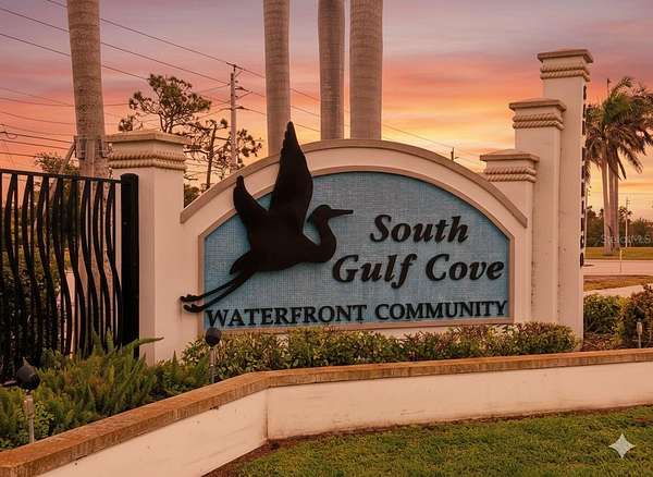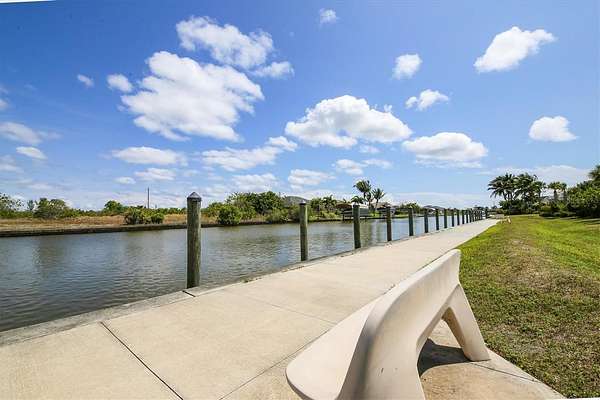 Discover the perfect canvas for your custom Florida lifestyle on this exceptional 0.23-acre homesite on the WATER located in the prestigious, deed-restricted community of South Gulf Cove. This build-ready lot offers a spacious 80' x 125' footprint on a quiet, paved circle with minimal traffic, making it an ideal setting for a private residence or a lucrative investment. To further streamline your build, the seller provides an engineered lot survey with elevations and drainage already stamped and approved, along with a set of approved, stamped house plans for a 3 bedroom, 2.5 bath 2.5 car garage home, specifically designed to fit this lot. Positioned in a non-Scrub Jay zone with public water and sewer available, this property removes the typical pre-construction hurdles, allowing you to move straight toward your dream home.