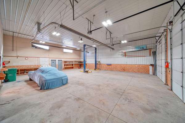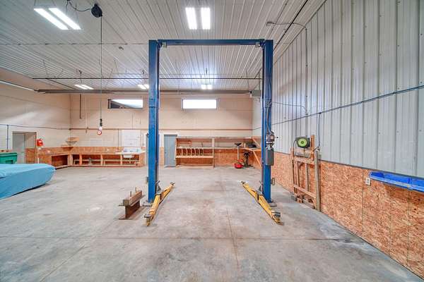 High-visibility commercial facility located on a Class A highway in Clarklake, MI. This 4,656sqft facility with gated entry offers an ideal blend of professional office space and functional shop area. The 1,200sqft office includes multiple private offices, a conference room, and reception area - perfect for client-facing operations. The 3,456sqft heated shop features 16ft ceilings, two 12ft overhead doors, one 14ft overhead door, and a heavy-duty concrete floor with steel fiber reinforcement. The property is equipped with 200amp electrical service and a 10,000lb lift is already in place. The excellent highway exposure makes it ideal for trades, logistics, service businesses, or any number of growing commercial operations.