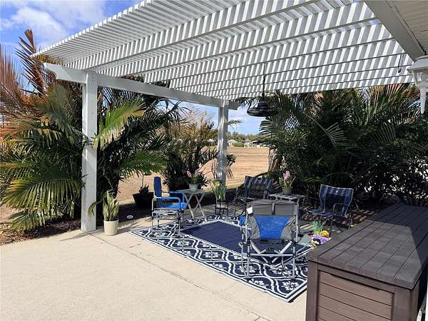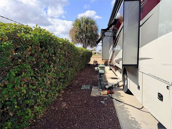This 5,076 sq ft lot features a 26'x76' concrete pad with full hookups for your motorhome, plus low-maintenance landscaping so you can spend more time enjoying Florida and less time working in the yard. Out back, the lifestyle really shines with a 12'x16' patio anchored by a slatted pergola that lets natural light filter through--surrounded by sugar palms and lush tropical plantings for pure Florida vibes.