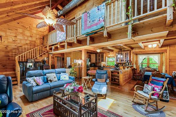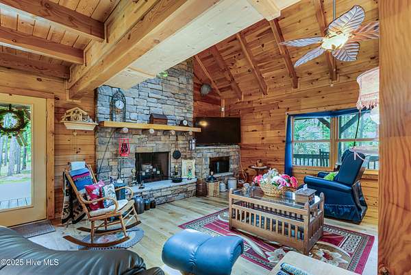 YOU FOUND IT!!! A log cabin in the woods and on a lake. This stunning, well-maintained 3 bedroom, 2.5 bath custom log home is on almost 2 acres of wooded lot. It has amazing lake views as well. There is plenty of room for outdoor activities or room to just spread your wings. This log home has everything you've imagined - mature landscaping (w/ irrigation), privacy, great views and that warm cozy feeling you get in a log home. There is an oversized, two-car garage with extra storage in the loft area. Great for storing your toys or as a workshop. When you enter the home, you will be greeted by the 2-story fireplace rising up through the vaulted ceiling. The open floor plan flows from the living area into the dining and kitchen areas. The kitchen has been updated with beautiful new appliances and a gas stove for the chef in your life. There is a wrap-around porch with multiple access points to the yard. On one end they have incorporated a ramp for easier access. Off of the porch there is a deck area where you can enjoy the views of the lake while spending time with friends and family. If you're into canoeing, kayaking or fishing - it's just out back. The main floor owner's suite provides easy one-level living. On the second floor you will find a full bath with a jetted tub and 2 bedrooms. The loft area provides a view over the living area and ends in the loft flex room. Every detail was thought about in this one-owner home and now it's time for you to enjoy it as well. Crawl space is encapsulated. Roof installed in 2024 with transferable warranty. HVAC upgraded in 2024. Tankless gas water heater.