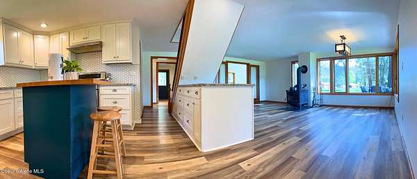 This 4-bedroom, 2-bathroom home is just under 1,900 sq ft on nearly 10 acres in North Idaho, with sweeping panoramic views of the Selkirk Mountains and a direct view up to Clifty. A newer 1,400 sq ft deck is perfect for entertaining, stargazing, or watching the occasional elk herd and abundant deer. Inside, radiant floor heating with multiple zones complements a freestanding wood stove. The kitchen features granite countertops, a center island, and locally made custom cabinetry. The property includes a she-shed, shop, carport, plentiful parking, and a fully fenced 100' x 50' garden. A private well producing 100+ GPM plus a Cabinet Water membership gives you an exceptional dual water source for all household needs. Level usable acreage, paved road access, and mature forest surroundings . Just 7 minutes to downtown Bonners Ferry and 40 minutes from Sandpoint, make this the rare property that delivers both privacy and convenience, with the kind of views you'll never grow tired of.