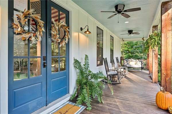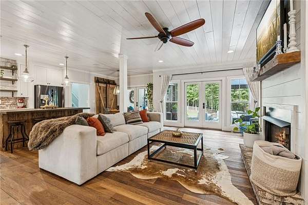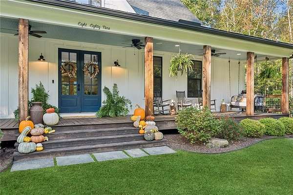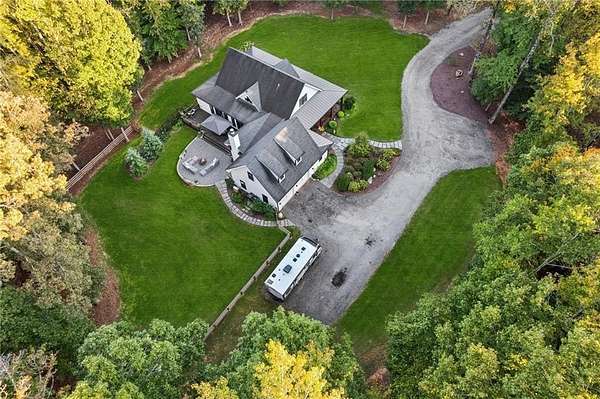 Welcome to your dream estate! Selling with 2 HOMES ON THE PROPERTY AND TOTAL OF 7.68 ACRES! Perfectly positioned in one of Cherokee County's most desirable locations and zoned for the award-winning Creekview High School, this 2017 custom-built farmhouse is a rare find. Just minutes to Milton, Alpharetta, and Ball Ground. Main home is Sitting on 5.48 acres of pristine, landscaped land, this 4-bedroom, 3-bathroom estate is a peaceful retreat with modern amenities, timeless charm, and flexible living space that fits your lifestyle today-and grows with you tomorrow. This home features a thoughtfully designed open-concept layout with expansive great room, sunroom, and bonus room, inviting spaces with vintage distressed hardwood floors throughout the main level. First-floor owner's suite featuring a spa-like bath, walk-in shower, custom vanity, and spacious walk-in closet, Gourmet kitchen with stone countertops, high-end appliances, and ample cabinetry-perfect for the home chef! Seamless flow between the living, dining, and kitchen areas. Beautiful sunroom off the kitchen with a wood burning fireplace. This home is ideal for gatherings and entertaining! Upstairs Living & Flex Space: This unique home offers two separate upstairs entrances for maximum versatility: there is a Private suite above the garage-ideal for guests, a home office, or playroom and a Second staircase leads to two oversized bedrooms, a full bath, and a bonus room perfect for a game room or additional office space! Downstairs there is 2,000+ sq ft partially finished basement with endless possibilities: in-law suite, gym, theater, bar/kitchen-a blank canvas for your vision! Some additional features of the property include Control4 smart home system with integrated Sonos speakers throughout, Irrigation system in front and side yards for easy maintenance and a 2 stall barn! This property is a true gem and has its own peace with this outdoor oasis, wrap-around porch for morning coffee, evening wine, and everyday relaxing. The second home is brick farmhouse-style home with 3 bedrooms and 2 bath on the property! Perfect for multi-generational living. This home features its own 2.2 acre lot with garden area and fenced back yard. Note: This second home will not be shown without proof of funds or pre-approval for both properties. Location Highlights: - Minutes to top-rated schools, shopping, dining, and major highways - Ideal for those seeking space, privacy, and convenience in one incredible package! Don't Miss This Rare Opportunity! Whether you're looking for your forever home, a multi-generational property, or a peaceful luxury escape close to it all, this stunning farmhouse offers more than just a home-it's a lifestyle