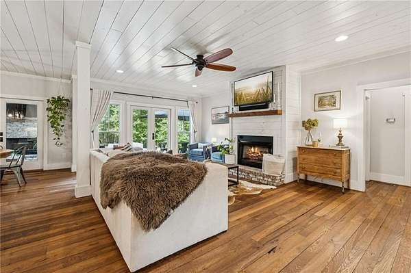 Welcome to your dream estate! Selling with 2 HOMES ON THE PROPERTY AND TOTAL OF 7.68 ACRES! Perfectly positioned in one of Cherokee County's most desirable locations and zoned for the award-winning Creekview High School, this 2017 custom-built farmhouse is a rare find. Just minutes to Milton, Alpharetta, and Ball Ground. Main home is Sitting on 5.48 acres of pristine, landscaped land, this 4-bedroom, 3-bathroom estate is a peaceful retreat with modern amenities, timeless charm, and flexible living space that fits your lifestyle today-and grows with you tomorrow. This home features a thoughtfully designed open-concept layout with expansive great room, sunroom, and bonus room, inviting spaces with vintage distressed hardwood floors throughout the main level. First-floor owner's suite featuring a spa-like bath, walk-in shower, custom vanity, and spacious walk-in closet, Gourmet kitchen with stone countertops, high-end appliances, and ample cabinetry-perfect for the home chef! Seamless flow between the living, dining, and kitchen areas. Beautiful sunroom off the kitchen with a wood burning fireplace. This home is ideal for gatherings and entertaining! Upstairs Living & Flex Space: This unique home offers two separate upstairs entrances for maximum versatility: there is a Private suite above the garage-ideal for guests, a home office, or playroom and a Second staircase leads to two oversized bedrooms, a full bath, and a bonus room perfect for a game room or additional office space! Downstairs there is 2,000+ sq ft partially finished basement with endless possibilities: in-law suite, gym, theater, bar/kitchen-a blank canvas for your vision! Some additional features of the property include Control4 smart home system with integrated Sonos speakers throughout, Irrigation system in front and side yards for easy maintenance and a 2 stall barn! This property is a true gem and has its own peace with this outdoor oasis, wrap-around porch for morning coffee, evening wine, and everyday relaxing. The second home is brick farmhouse-style home with 3 bedrooms and 2 bath on the property! Perfect for multi-generational living. This home features its own 2.2 acre lot with garden area and fenced back yard. Note: This second home will not be shown without proof of funds or pre-approval for both properties. Location Highlights: - Minutes to top-rated schools, shopping, dining, and major highways - Ideal for those seeking space, privacy, and convenience in one incredible package! Don't Miss This Rare Opportunity! Whether you're looking for your forever home, a multi-generational property, or a peaceful luxury escape close to it all, this stunning farmhouse offers more than just a home-it's a lifestyle