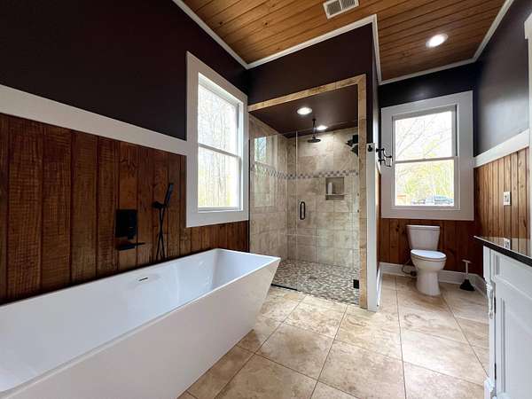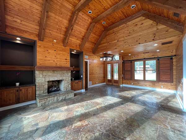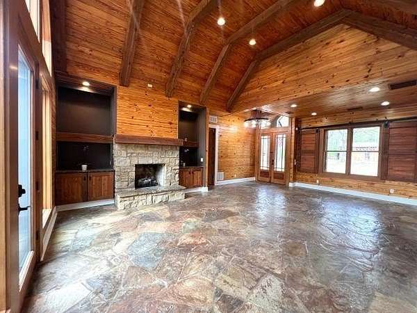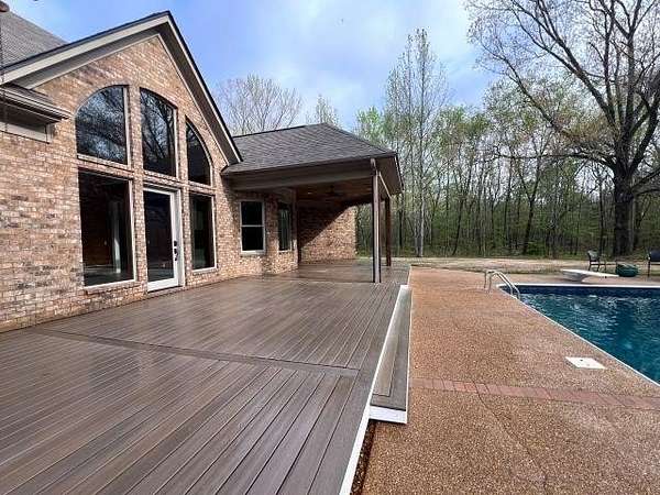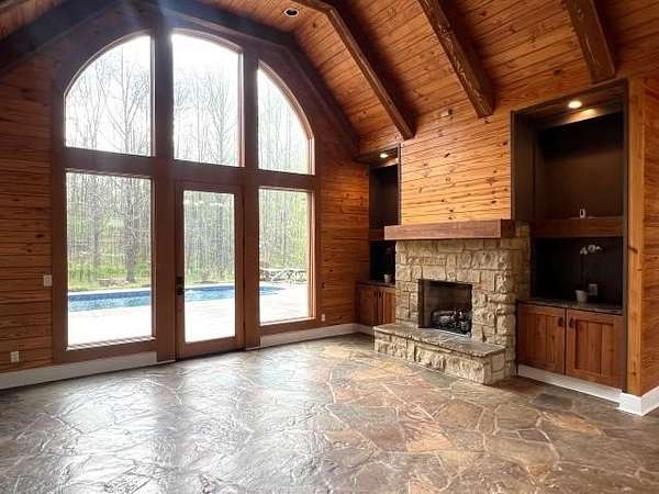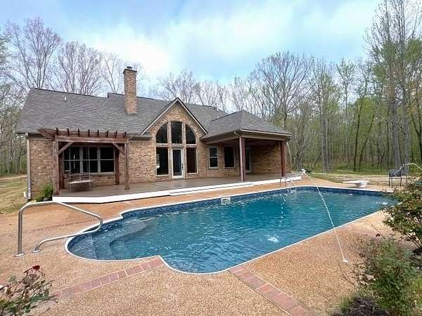This is a rare find, only 8 miles from Collierville! If calm country living is your desire, this custom rustic chalet/ranch style home will be your piece of paradise! This stunning home is cradled behind its own security gates, boasting it's in-ground pool surrounded by 10.75 wooded acres. Once you enter the home you won't be able to take your eyes off the massive arched windows! They make you feel like you're living outdoors as you enjoy the safe and secure cozy feel in your 2992 sq. ft. home with 4 bedrooms, (2 EU Suites on the first floor), 3 1/2 baths, custom kitchen with plenty of cabinets and countertops surrounding the huge island, a beautiful dining room/office, tongue and groove vaulted ceilings, multiple sliding barn doors and windows, stone floors, tankless water heater, and so much more. This is one of those once in a lifetime finds, don't wait!