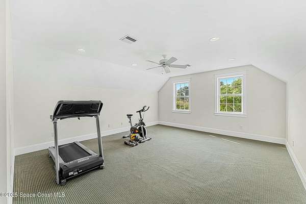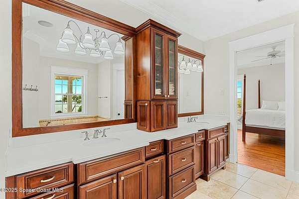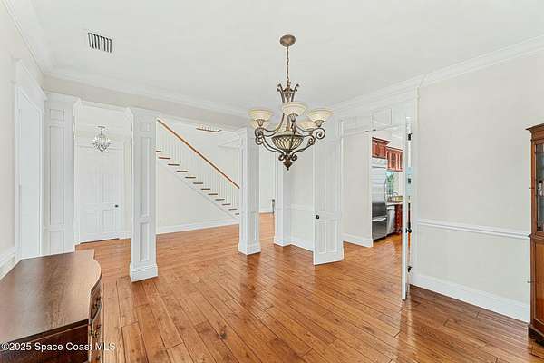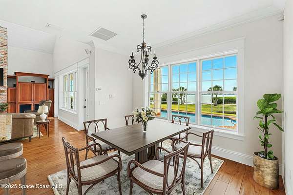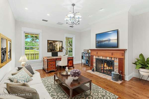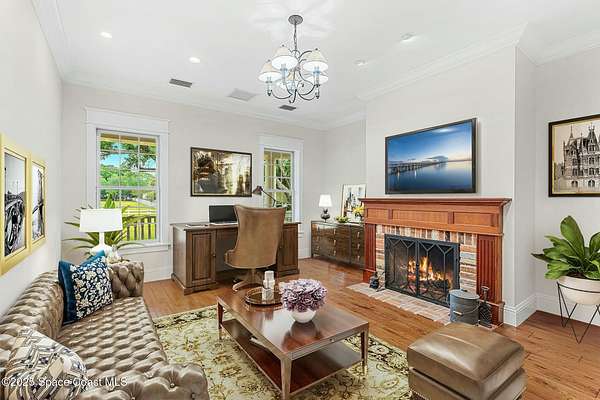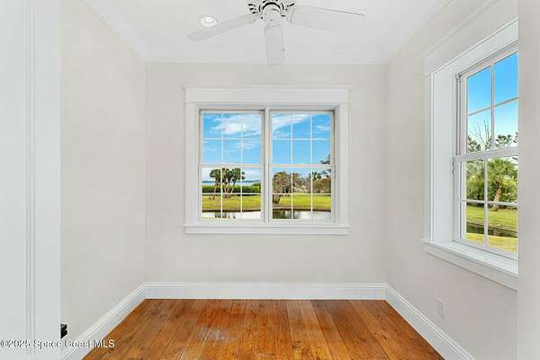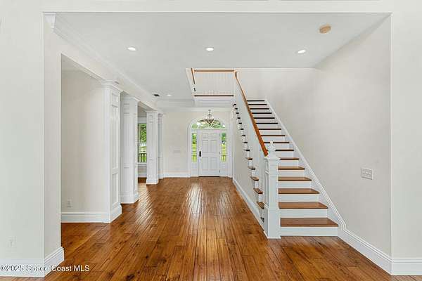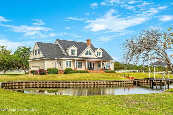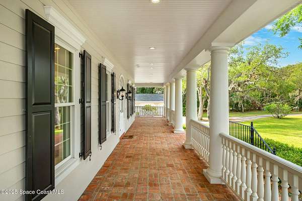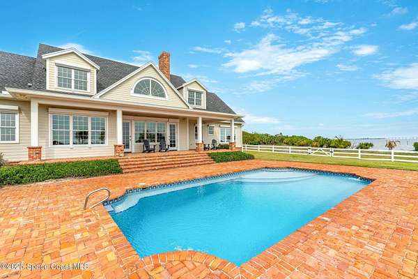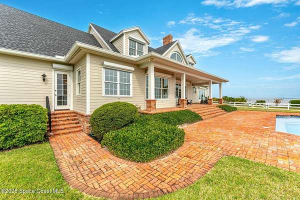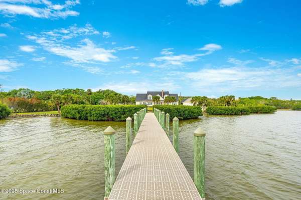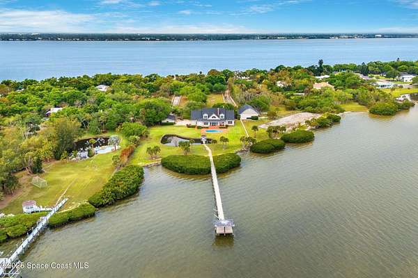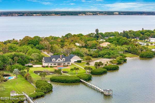 A rare River-to-River estate on nearly 6.2 acres along prestigious S. Tropical Trail offers unparalleled privacy, grandeur, and breathtaking waterfront views. A majestic oak-lined drive leads to this stately residence, featuring 540+ft of Banana River frontage to the east and 200+- ft on the Indian River to the west-both with docks, ensuring stunning sunrises and sunsets. The elegant interior boasts gleaming wood floors, soaring cathedral ceilings, and walls of windows framing serene water views. A river-facing kitchen, spacious living areas, and a luxurious primary suite create an inviting yet refined ambiance. Upstairs, three bedrooms, a Jack & Jill bath, an on-suite, and a versatile bonus room offer ample space. With a new roof (2021) and fresh exterior paint, this estate is a once-in-a-lifetime opportunity to own a rare dual-river property. Experience timeless elegance, unmatched tranquility, and endless possibilities. Mature oaks drape gracefully over the private entrance, setting the tone for the gracious Southern estate living that awaits beyond. The home's classic yet timeless facade exudes elegance, while expansive river frontage offers an exclusive retreat. Sunlit interiors blend warmth and sophistication, featuring cathedral ceilings, gleaming wood floors, and walls of windows that bathe the home in natural light. The primary suite boasts sweeping water vistas, a spa-like bath, and a private sanctuary to enjoy morning coffee. A versatile office/library/nursery and a second office provide flexible space for work or relaxation. Upstairs, three well-appointed bedrooms offer privacy, with a dormer ed bonus room ideal for a second family room, media center, or music space. An additional study/computer area expands possibilities for work or hobbies.This legacy estate, one of the last remaining dual-river properties, offers an unrivaled combination of tranquility, prestige, and endless potential