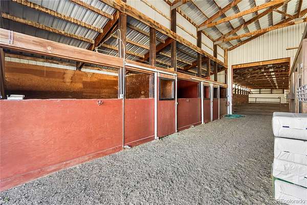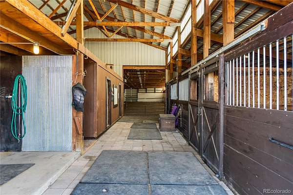 Exceptional income-producing equestrian property with rare highway frontage opportunity on HWY 86. This fully equipped horse facility offers a 120x70 indoor arena, 6 indoor stalls, wash stall, tack rooms, outdoor arena, multiple loafing sheds, and a large turnout pasture, ideal for boarding, training, or personal use. The property also includes a 40x60 detached shop/garage, two full RV hookup pads, and two wells with adjudicated water rights, an incredibly valuable feature. A natural pond sits among the trees (seasonal depending on drought conditions), adding to the property’s unique setting. The 3 bed, 2 bath home features an open floor plan with a spacious kitchen flowing into the living and dining areas, plus a sliding glass door leading to the deck. The unfinished walkout basement offers excellent potential for a separate in-law suite or caretaker quarters. Set back from HWY 86, the home maintains privacy and quiet while still benefiting from high-visibility frontage road access. The north portion of the property falls within an Economic Development Zone, creating a rare opportunity for future business use or investment potential. Whether you're looking to operate an equestrian center, generate income, or create a multi-use property with long-term value, this property delivers.
