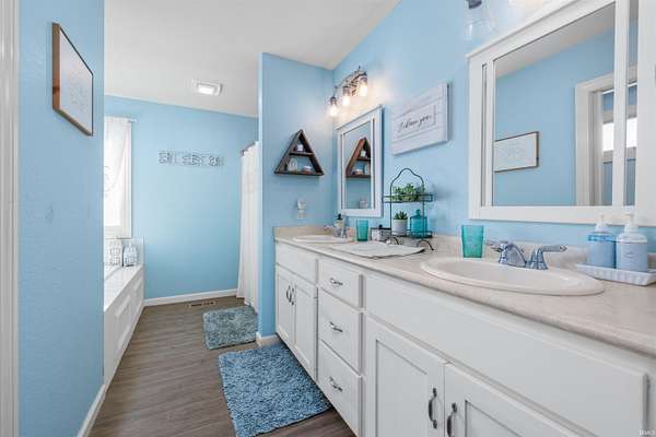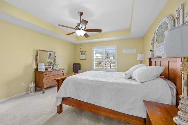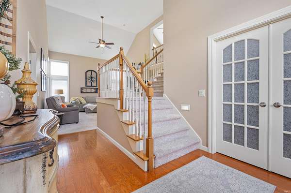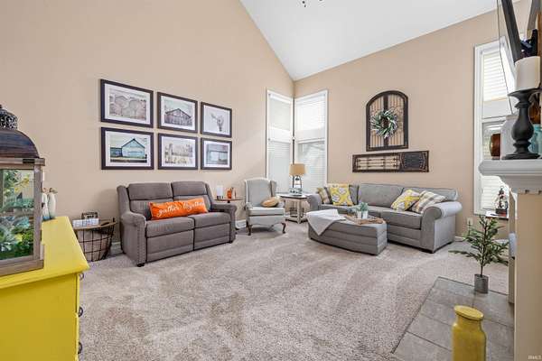 Welcome home to this beautiful property offering almost 3000 sq ft of comfort, style, and function throughout. The main floor features a private owner's suite and a split-bedroom floor plan on upper floor for added privacy. Soaring 9-foot ceilings. fireplace, perfect view of the pond and an open-concept kitchen with Grabill Hickory cabinets create a warm and inviting atmosphere, perfect for entertaining guests. The loft also overlooks the Great room for more space to relax. Enjoy peace of mind with numerous updates, including new laminate flooring and dishwasher in the kitchen, new carpet(2025) in the bedrooms, and a new roof(2024). Additional touches like plantation shutters and a walk-in attic (accessible from upstairs or via pull-down in the garage) add convenience and charm. Go down to the finished basement for more entertaining or just hanging out. For your peace of mind there is a 1/2 Hp Sump Pump(2024). Step outside to your outdoor living space overlooking the pond, featuring Crystal Creek concrete, a built-in grill, and Master Spa hot tub(2022) -- perfect for relaxing or hosting gatherings. The Polypro concrete-coated garage floor(2021) provides a clean, durable finish. This home truly has it all -- a beautiful brick front exterior with a covered front porch, thoughtful upgrades, and inviting spaces inside and out.