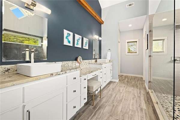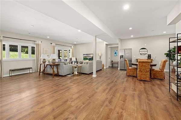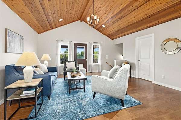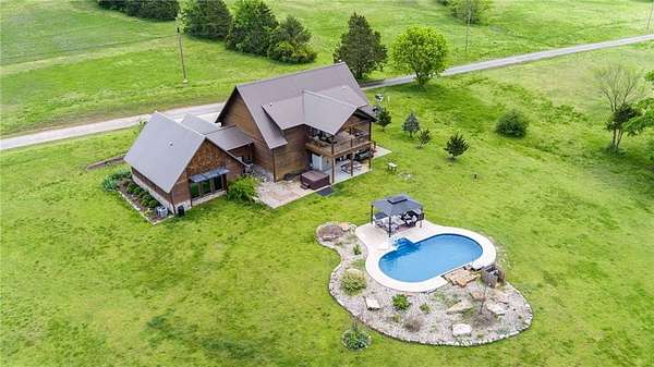 Escape to this serene, natural setting on 1.65 acres in the Riverside at Shady Grove community where residents enjoy floating and fishing from the private gravel bar on the King's River; just 15 minutes from Eureka Springs and 5 minutes from the Walmart in Berryville. The current owners love sunsets from the covered back porch, pool, hot tub, and main-level primary suite (added in 2019) where they regularly see deer, turkey, and eagles in this quiet setting. In a floor plan designed for hosting guests and entertaining, 4 bedrooms with 4 en-suite baths are spread out on the two levels, which each include living rooms and flexible spaces. A large eat-in kitchen with barstool seating opens to the upper living room, where sunsets are maximized in the evenings on the covered back porch. French doors connect the covered front porch to the main level living room, which is plumbed for a second kitchen if desired. Schedule a tour today!