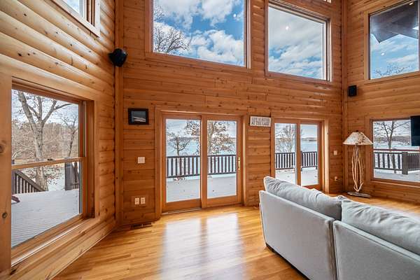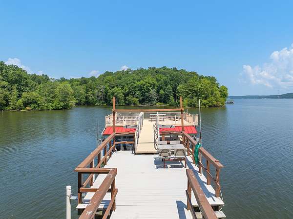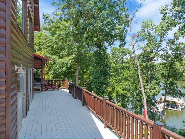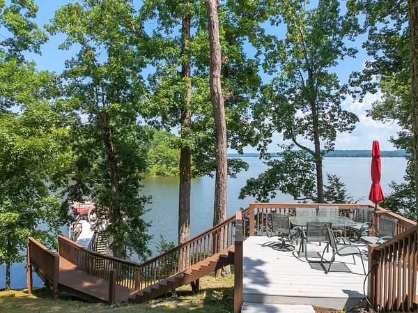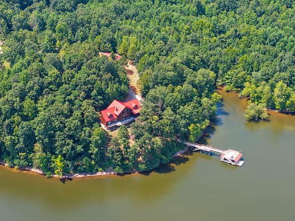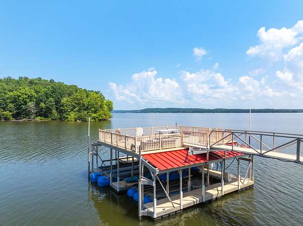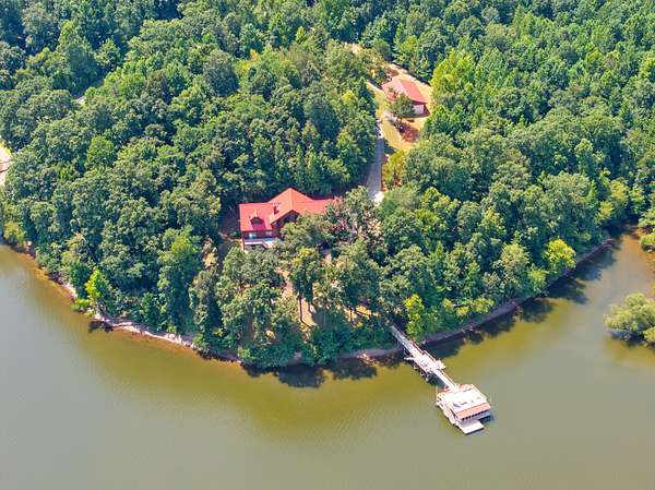 Private retreat as you are drawn into this gated subdivision and whisked back to your private lakeside sanctuary. This home featuring over 5,000 finished square feet, high end commercial kitchen appliances, over 3000 square feet of deck, patio, screened porches and dock space to enjoy lakefront living at its best. Many upgrades since this new owner including Hvac, bathrooms, flooring, exterior painting and new standing seem roof on house and dock. Just come move right in and enjoy and entertain in the custom made bar, stage area and entertaining space in the basement boasting another bedroom and bath, surround sound inside and out. Fiber currently being installed and benefits of this HOA are private boat launch, helipad, privacy entry gate and maintained roads.