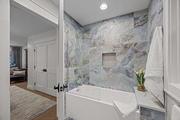 - Bar, Beamed Ceilings, Built In Features, Cathedral Ceilings, Ceiling Fans, Chandelier, Crown Molding, Double Vanity, Dry Bar, Entrance Foyer, Granite Counters, High Ceilings, High Speed Internet, Kitchen Island, Open Floorplan, Pantry, Primary Downstairs, Soaking Tub, Stone Counters, Vaulted Ceilings, Wired For Data