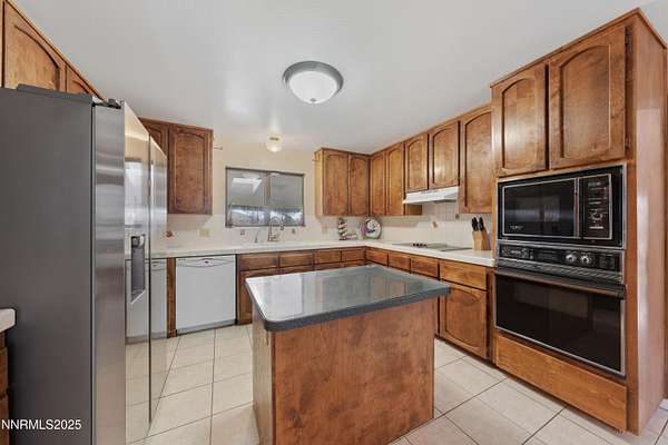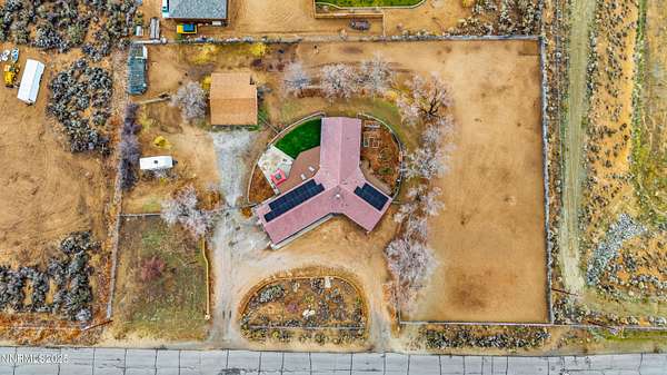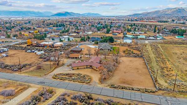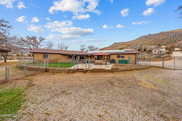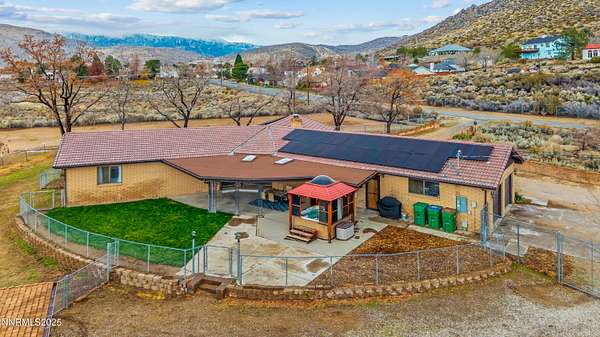 Step through the front door of 95 E Bonanza Dr and feel immediately at home. The living room opens gracefully to the dining area, bathed in natural light streaming through expansive windows. Make your way to great room where your eyes are drawn upward to the vaulted ceilings and rich exposed wood beams, while the brick fireplace anchors the room, perfect for cozy evenings or lively gatherings. Follow the flow of the home down the hall to the primary retreat, a private sanctuary where comfort meets style. The primary bathroom boasts dual sinks, a separate shower stall, and a deep soaking tub, while two oversized closets provide more than enough space for your wardrobe and treasures. Continuing down the hall, you'll discover two additional bedrooms, one thoughtfully arranged as a private in-law suite with a kitchenette and sliding doors that open directly to the lush garden and Trex deck, a peaceful spot to sip your morning coffee or unwind as the sun sets. Step outside from the oversized living roomonto the backyard oasis, where a gazebo and private Jacuzzi await. Imagine evenings spent under the stars, soaking in the spa while enjoying sweeping mountain views. The 1.5+ acres of land offer endless possibilities: RV and boat parking, a workshop for projects or hobbies, garden spaces, or simply room to stretch out and enjoy privacy like nowhere else in Carson City. The paid-off solar panels make energy-efficient living effortless, letting you relax and enjoy the home without worry. Convenience meets thoughtful design inside as well, with a laundry room and half bathroom off the kitchen, making hosting guests or daily routines effortless. Every corner of this home is designed to capture light, showcase space, and connect you to the serene outdoors. Located just minutes from Highway 395 for easy commuting, and only a short drive to the Silver Oak Golf Course, Reno, Lake Tahoe, and Carson City amenities, this home delivers privacy, land, mountain views, and lifestyle all in one. With over 2,700 sq ft of living space, soaring ceilings, abundant natural light, and a backyard built for entertaining, 95 E Bonanza Dr isn't just a home, it's a Northern Nevada experience waiting for you to live it.