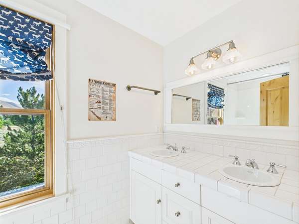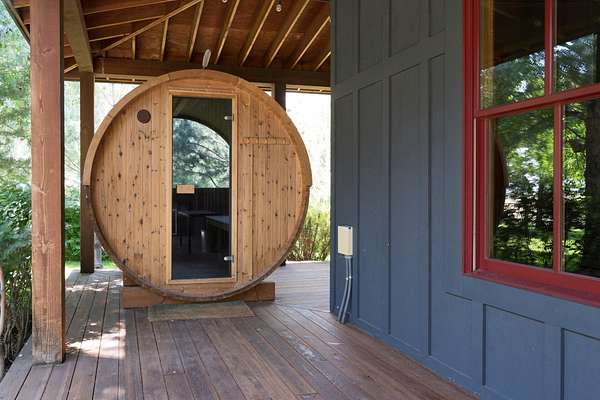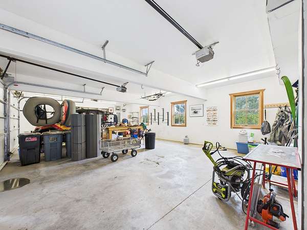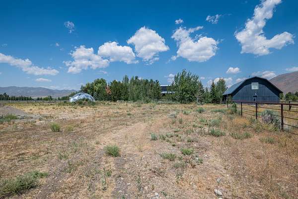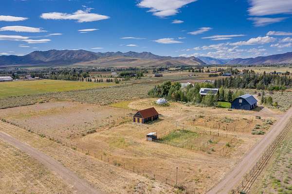 Sun Valley-style Craftsman home with a modern kitchen, high-end appliances, soaring ceilings, oversized doors, and premium hardware. Features include a wraparound porch, sauna, guest cottage, mature landscaping, 3-car garage, heated barn/shop, greenhouse, stables, riding arena, and paddocks-plus a 24kW solar array with 20kW battery backup. view. A 24kW solar array with 20kW battery backup ensures reliable power and significantly reduces energy costs. Main Residence: Approximately 2,984 square feet total, evenly split between the ground and upper floors. Includes four bedrooms, a library, and a huge wraparound porch with sauna. Exterior: Classic farm-style board-and-batten siding topped with a durable metal roof. Features red-clad double-hung windows and a paver walkway connecting the garage, driveway, and house. The property includes a circular gravel driveway lined with a drip irrigation system for the trees along the route. Relax in the sunken paver patio with a pergola/gazebo, or enjoy the covered front deck plus an expansive wraparound covered porch. Amenities also include a sauna and a productive orchard with cherry, pear, and apple trees. A small wooded area boasts willows, evergreens, mountain ash, aspens, and other native plants. The irrigated lawn is bordered by a classic post-and-rail fence. Garage & Guest Apartment The detached garage with an attached apartment covers roughly 1,920 square feet. The three-bay garage is finished, includes windows, and has access to the guest apartment both internally and externally. Heated by gas forced air, the apartment offers a bedroom with vaulted ceilings, a bathroom with tub/shower, a kitchen with tiled counters and bar, stackable washer/dryer closet, white pine floors, solid Alder doors, and ceiling fans. "Red Barn" Workshop Heated by gas forced air, this finished workshop includes extensive electrical work but no plumbing. It features glue-laminated plywood flooring. The main floor is approximately 55 by 35 feet with 10.5-foot ceilings, an 8-foot man door, and a large sliding garage door. The second floor offers office space and additional storage. Land & Grounds Situated on nearly 10 acres, the property includes fenced areas for pets and two separate horse enclosures. Horse facilities feature a riding arena with a specialized sand base and primarily metal five-rail fencing, multiple corrals with frost-free water, two loafing sheds, and electrical hookups near the horse areas. Additional outdoor features include a full greenhouse, chicken coop, irrigated raised garden beds, and a garden shed.