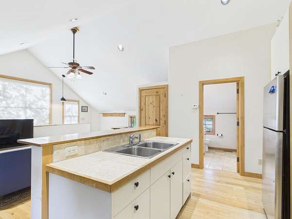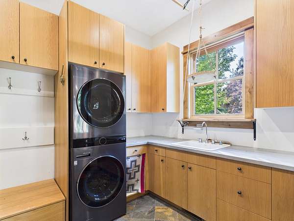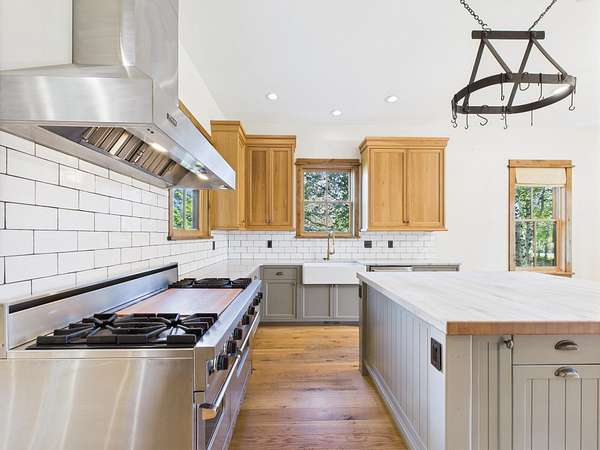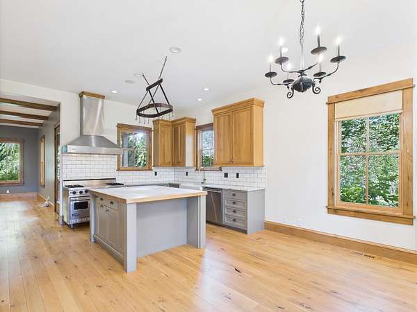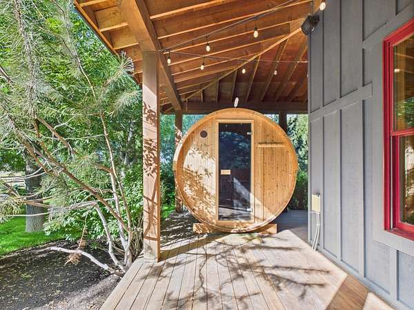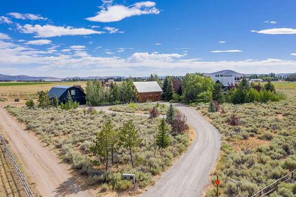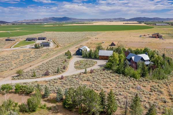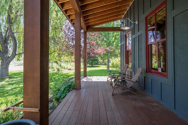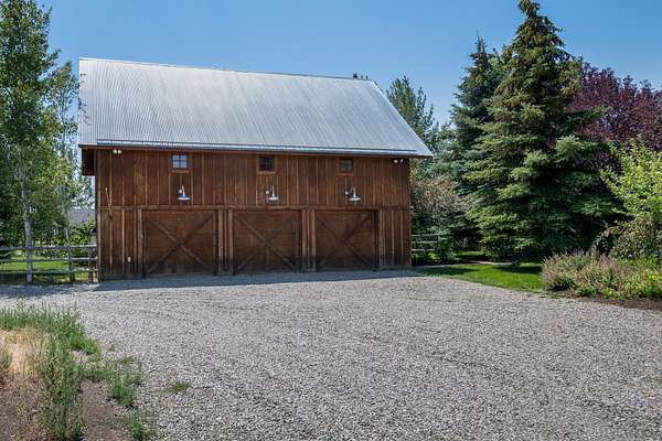 Sun Valley-style Craftsman home with a modern kitchen, high-end appliances, soaring ceilings, oversized doors, and premium hardware. Features include a wraparound porch, sauna, guest apartment, mature landscaping, 3-car garage, heated barn/shop, greenhouse, stables, riding arena, and paddocks plus a 24kW solar array with 20kW battery ensuring reliable power and reducing cost. Main Residence: Approximately 2,984 square feet total, evenly split between the ground and upper floors. Includes four bedrooms, a library, and a huge wraparound porch with sauna. Exterior: Classic farm-style board-and-batten siding topped with a durable metal roof. Features clad double-hung windows and a paver walkway connecting the garage, driveway, and house. The property includes a circular gravel driveway lined with a drip irrigation system for the trees along the route. Relax in the sunken paver patio with a pergola/gazebo, or enjoy the covered front deck plus an expansive wraparound covered porch. Amenities also include a sauna and a productive orchard with cherry, pear, and apple trees. A small wooded area boasts willows, evergreens, mountain ash, aspens, and other native plants. The irrigated lawn is bordered by a classic post-and-rail fence. Garage & Guest Apartment The detached garage with upstairs apartment covers roughly 1,920 square feet. The three-bay garage is finished, includes windows, and has access to the guest apartment both internally and externally. Heated by gas forced air, the apartment offers a bedroom with vaulted ceilings, a bathroom with tub/shower, a kitchen with tiled counters and bar, stackable washer/dryer closet, white pine floors, solid Alder doors, and ceiling fans. Workshop Heated by gas forced air, this finished workshop includes extensive electrical upgrades and glue-laminated plywood flooring. The main floor is approximately 55 by 35 feet with 10.5-foot ceilings, an 8-foot man door, and a large sliding garage door. The second floor offers office space and additional storage. Land & Grounds Situated on nearly 10 acres, the property includes fenced areas for pets and two separate horse enclosures. Horse facilities feature a riding arena and primarily metal five-rail fencing, multiple corrals with frost-free water, two loafing sheds, and electrical hookups near the horse areas. Additional outdoor features include a full greenhouse, chicken coop, irrigated raised garden beds, and a garden shed. NO CCRS