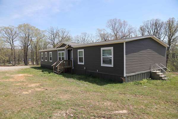 2024 double wide on 5.05± acres in Powhatan, AR. This 2,240± sq ft home features 4 bedrooms and 2 bathrooms with an open-concept living, kitchen, and dining area. Kitchen includes modern appliances and a large pantry. Spacious primary suite with walk-in shower (dual shower heads) and soaking tub. Home is set on a pier and beam foundation with metal tie-downs. Electric and water are connected. Property is partially wooded with recent dirt work completed, offering room for a shop, garden, or additional improvements. Located minutes from the Black River, Powhatan Historic State Park, and approximately 20 miles to the Spring River.