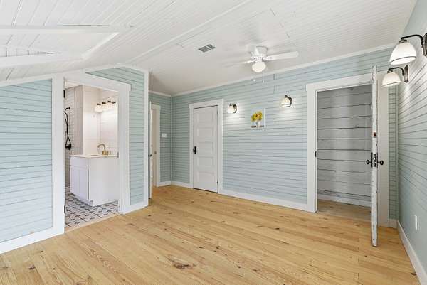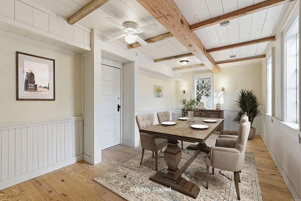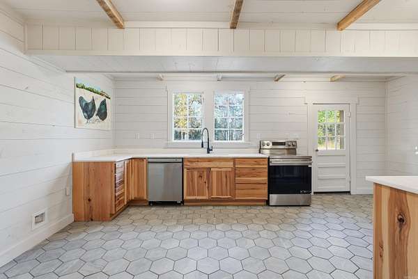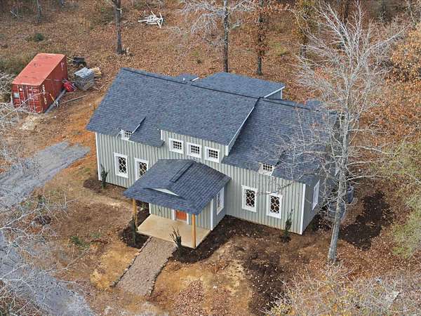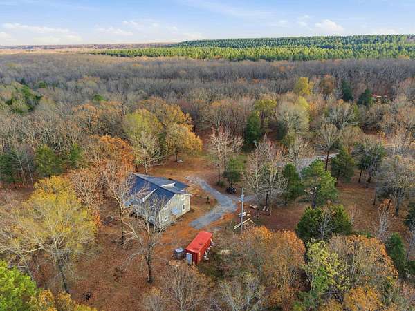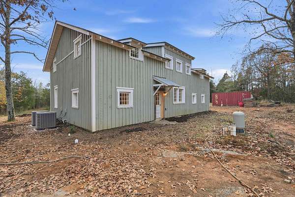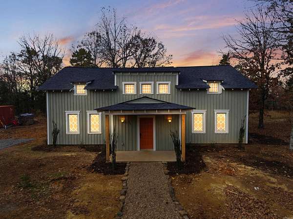 This recently remodeled home on 5 acres is one of the most unique, charming homes on the market! As soon as you enter the front porch and walk through the terracotta door, you'll know you've found something special. The charming details include 8x8 pine beams, native Arkansas pine tongue and groove floors, 100 year old windows from New England, and restored wooded doors from a turn of the century Boston tavern. Nothing cookie-cutter here! Downstairs you'll find a living room, large dining room, oversized pantry, beautiful kitchen with quartzite countertops and hickory cabinets , a full bath with clawfoot tub, a half bath, laundry room, and an office that could also be used as a 5th bedroom. Wainscoting walls add the perfect accent to the downstairs aesthetic. Upstairs is a large bonus room that could be used as a kid's play area, study, library, workout room, and more. All 4 bedrooms are upstairs, including an ensuite bathroom off the primary bedroom with custom tile shower. The other full bathroom also features a tile shower. This property is set up to be a homesteaders paradise with well water on site. The setting, the home, the details, are all stunning.