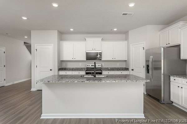 - Dishwasher, Microwave, Range, Refrigerator, Stainless Steel Appliances