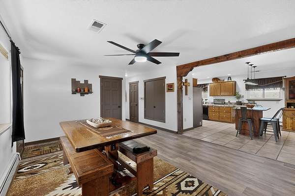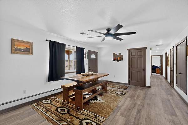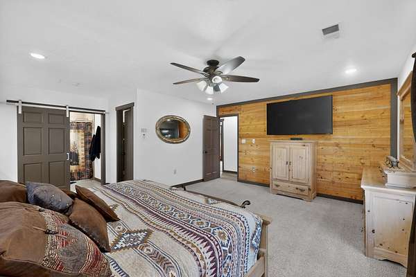- Ceiling Fans, Family Dining Room, Kitchen Island, Living Dining Room, Main Level Primary, Pantry, Walk In Closets