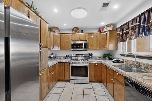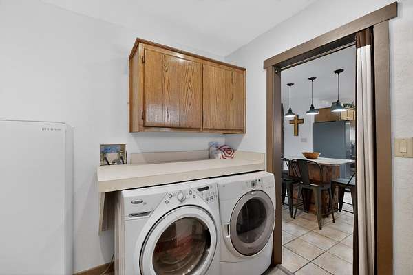 - Dishwasher, Disposal, Dryer, Free Standing Gas Range, Microwave, Refrigerator, Washer
