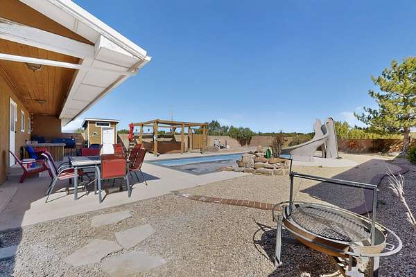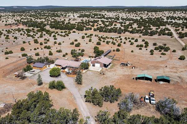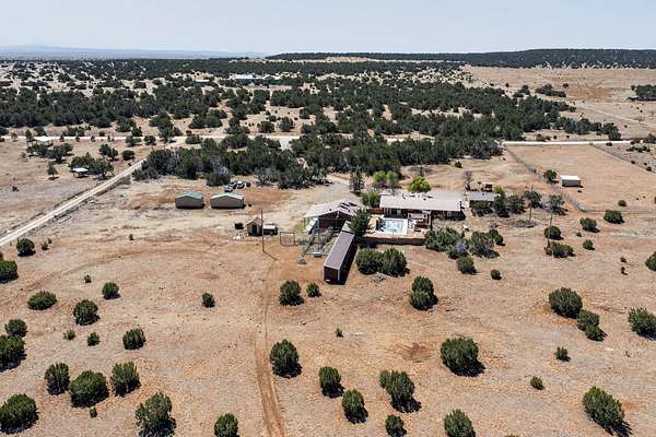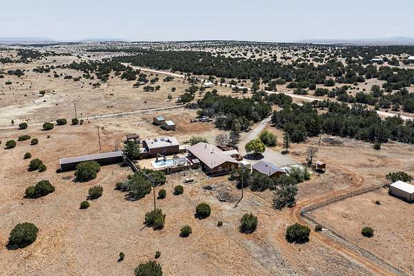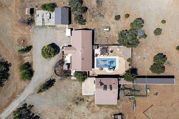 Est $3,709/moGot Space?? Exceptional opportunity to own a versatile 20-acre estate featuring a 3-bedroom, 2-bath main home, along with a 727 sq ft 1-bedroom, 1-bath casita, ideal for guests, rental income, or multigenerational living. The property also includes a spacious 1,351 sq ft workshop, perfect for hobbies, storage, or business use, as well as a corral and stables for equestrian or livestock needs. Enjoy outdoor living with a solar-heated pool, all set against expansive acreage offering privacy and endless possibilities. Durable pro-panel roofing adds long-term value and peace of mind to this unique property.