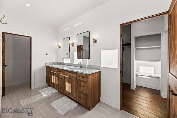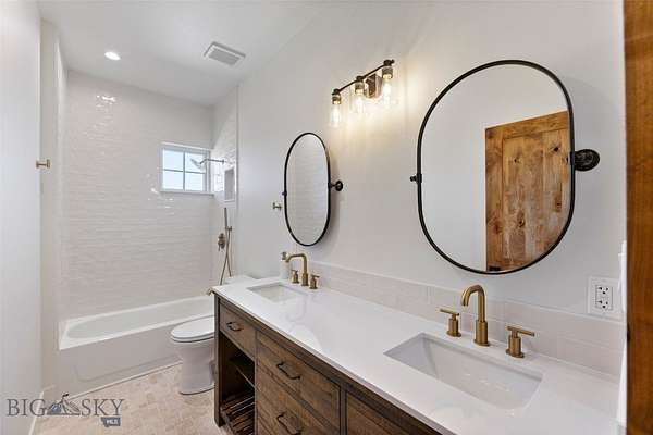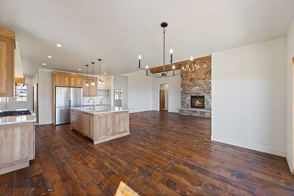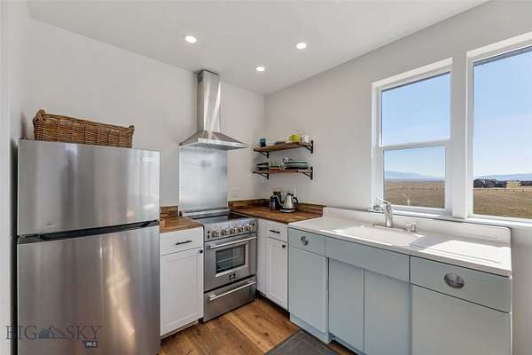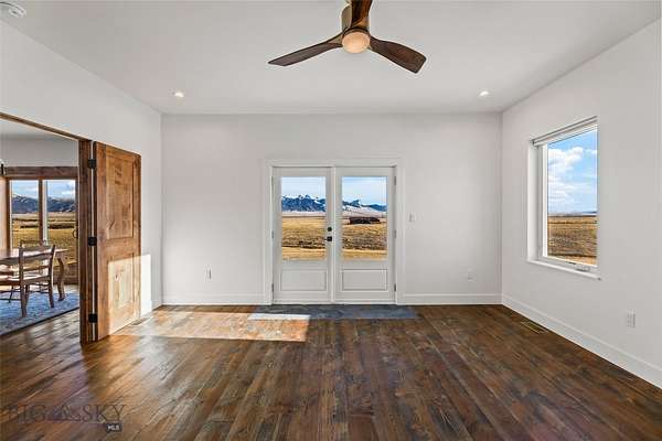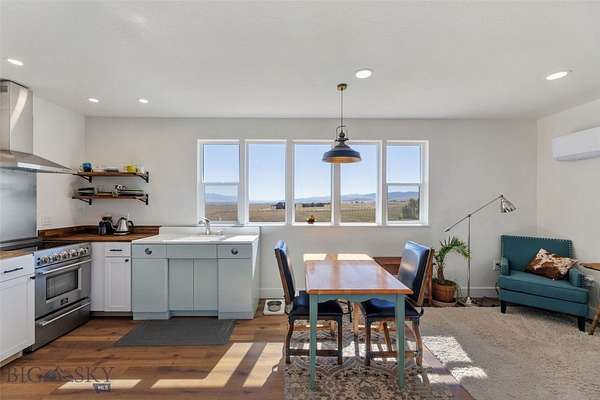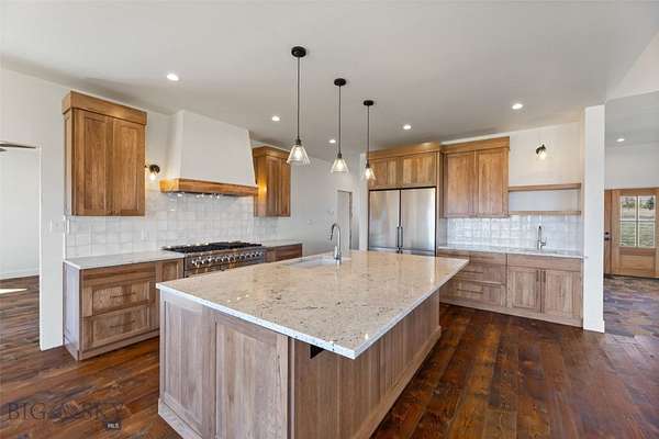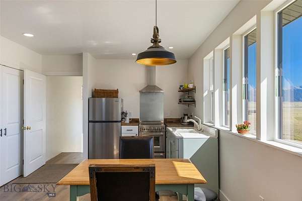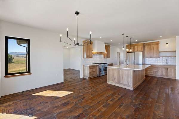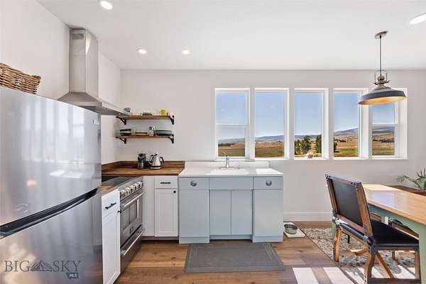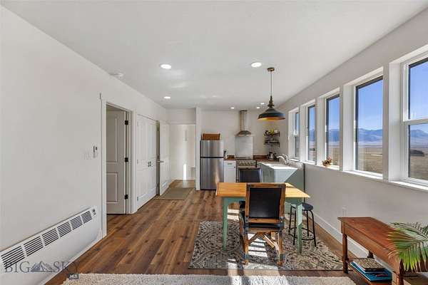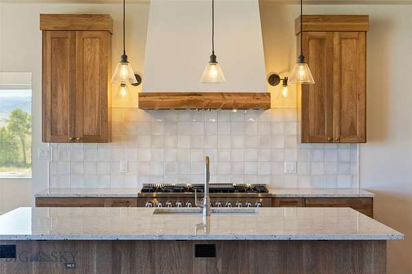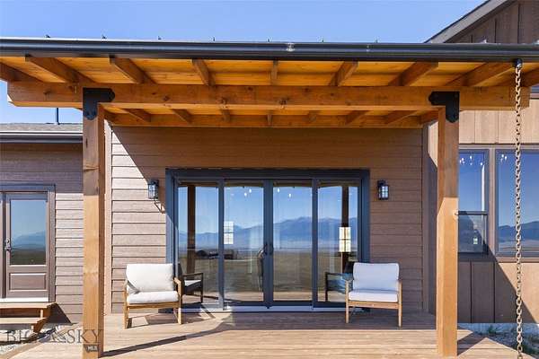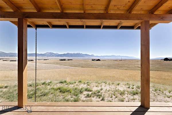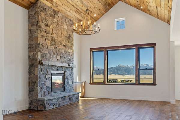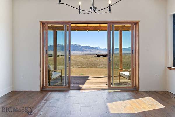 Welcome to this exceptional 3,159+/- SF custom home on 5.66 acres in the desirable Pronghorn Meadows subdivision. With 8 Mile Creek and a designated wildlife corridor running through the property, this residence offers a true Montana living experience just minutes from Ennis. Designed with comfort and elegance in mind, the main home features 3 bedrooms, 3.5 bathrooms, plus an office, and an open floor plan with fir circle sawn tongue and groove floors, a Montana moss rock propane fireplace with thermostat and blower, and a vaulted living area with reclaimed barnwood circle sawn ceilings and floor-to-ceiling windows framing breathtaking Madison Range views. The chef's kitchen is a showstopper, boasting a Forno 8-burner gas range with 48" hood, a 48" Forno refrigerator/freezer, Bosch dishwasher, hickory cabinets, granite countertops, tile backsplash, and a large walk-in pantry with barn door. Off the dining room, a 10' sliding glass door opens to the outdoors. The luxurious master suite offers French door entry, private outdoor access, and a spa-like ensuite with a freestanding soaking tub, oversized custom tile shower, double vanity, and toilet room. Guest spaces include one ensuite with walk-in closet and custom tile shower, plus a second full bath with travertine floors, custom tub/shower, and double vanity. Every closet features a custom organizer system. A 576+/- SF apartment above the garage provides flexible living space with a kitchen, living room, bedroom, bath, and expansive views. It can also have its own private entrance, if desired, making it ideal for guests, extended family, or long term rental income. Additional highlights include: dedicated office/flex space; mudroom with exterior access, sink, and storage; tile-finished laundry room with sink; two-car garage plus an oversized bay with 10' door for RVs or recreational vehicles; two water heaters, central air and forced propane heat. Estimated completion is October 31, 2025 and the seller's are offering a $20,000 credit for landscaping. Pronghorn Meadows residents enjoy a community center, equestrian facility, fenced RV storage, trails, and open space while being just minutes from world-class fishing on the Madison River, hunting, hiking, and all the recreational opportunities of Southwest Montana. Conveniently located near Ennis, Yellowstone National Park, Big Sky, and Bozeman.